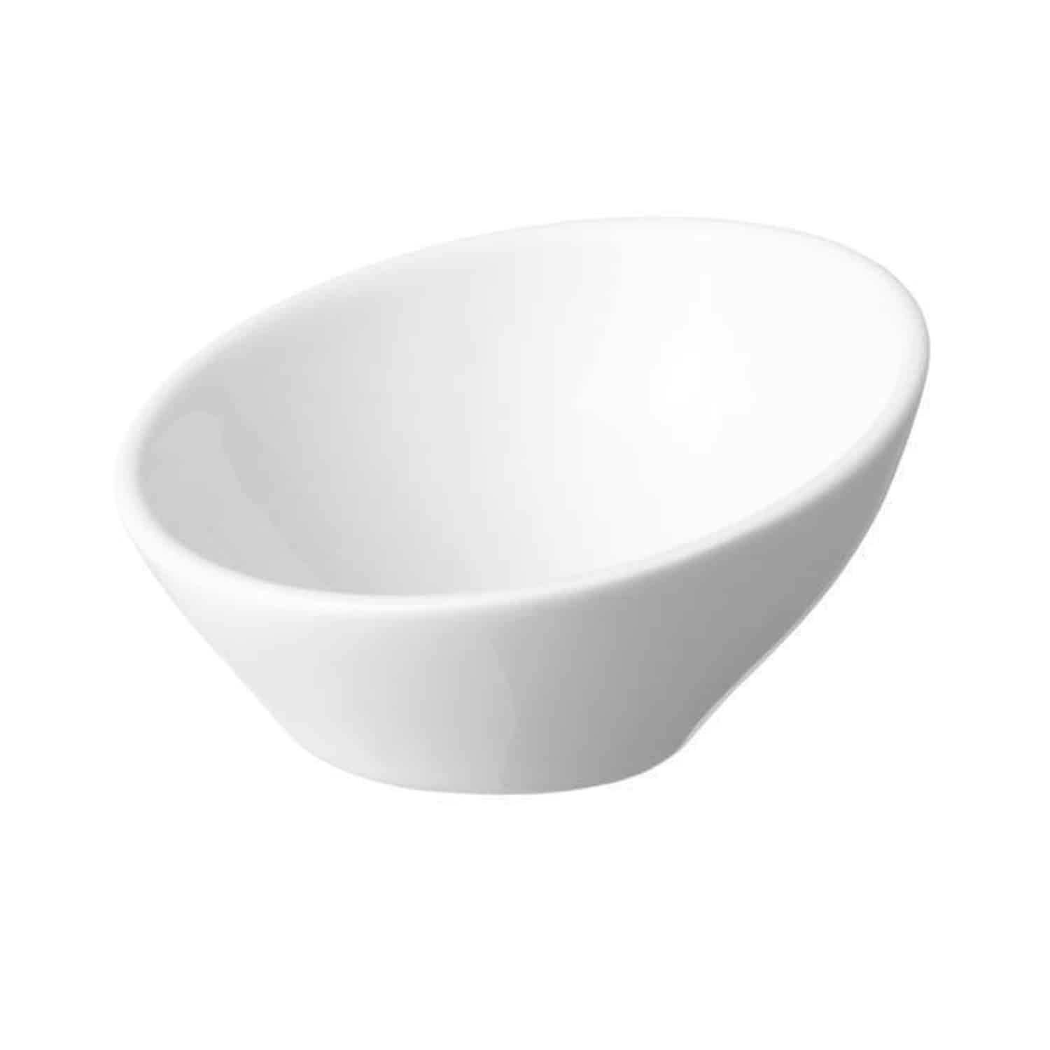 Bol din porțelan înclinat, indispensabil pentru finger food