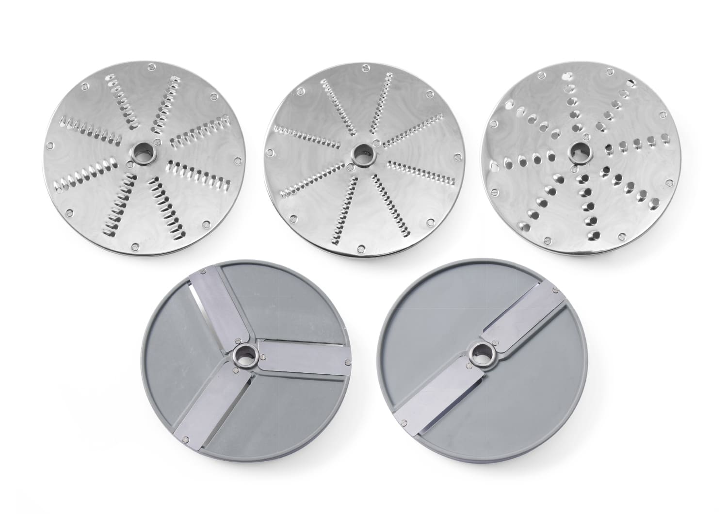 - Include 5 discuri pentru diferite tipuri de tăiere: felii de 2 și 4 mm, fâșii de 3,5 și 7 mm