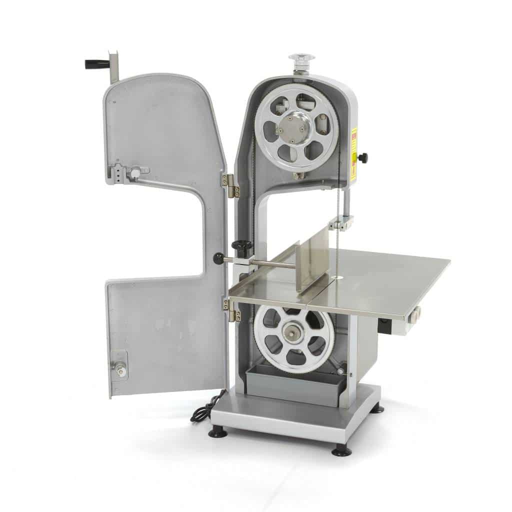 Fierăstrăul electric pentru oase – 1650 mm | Maxima 09362200 cu motor de 750 W – 230 V este un fierăstrău puternic pentru oase, ideal pentru măcelării și bucătării profesionale. Acest utilaj robust și compact este conceput pentru uz profesional. Lama are o lungime de 1650 mm, lățime de 16 mm și grosime de 0,5 mm. Grosimea de tăiere este de la 5 la 155 mm.