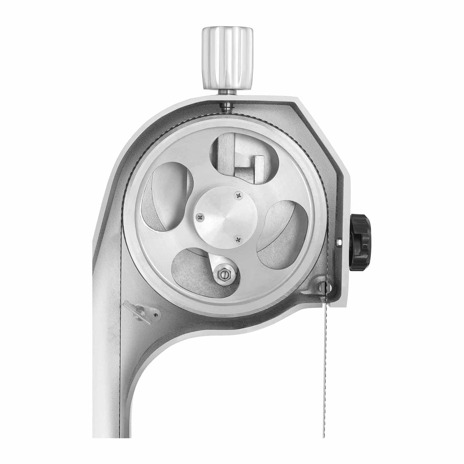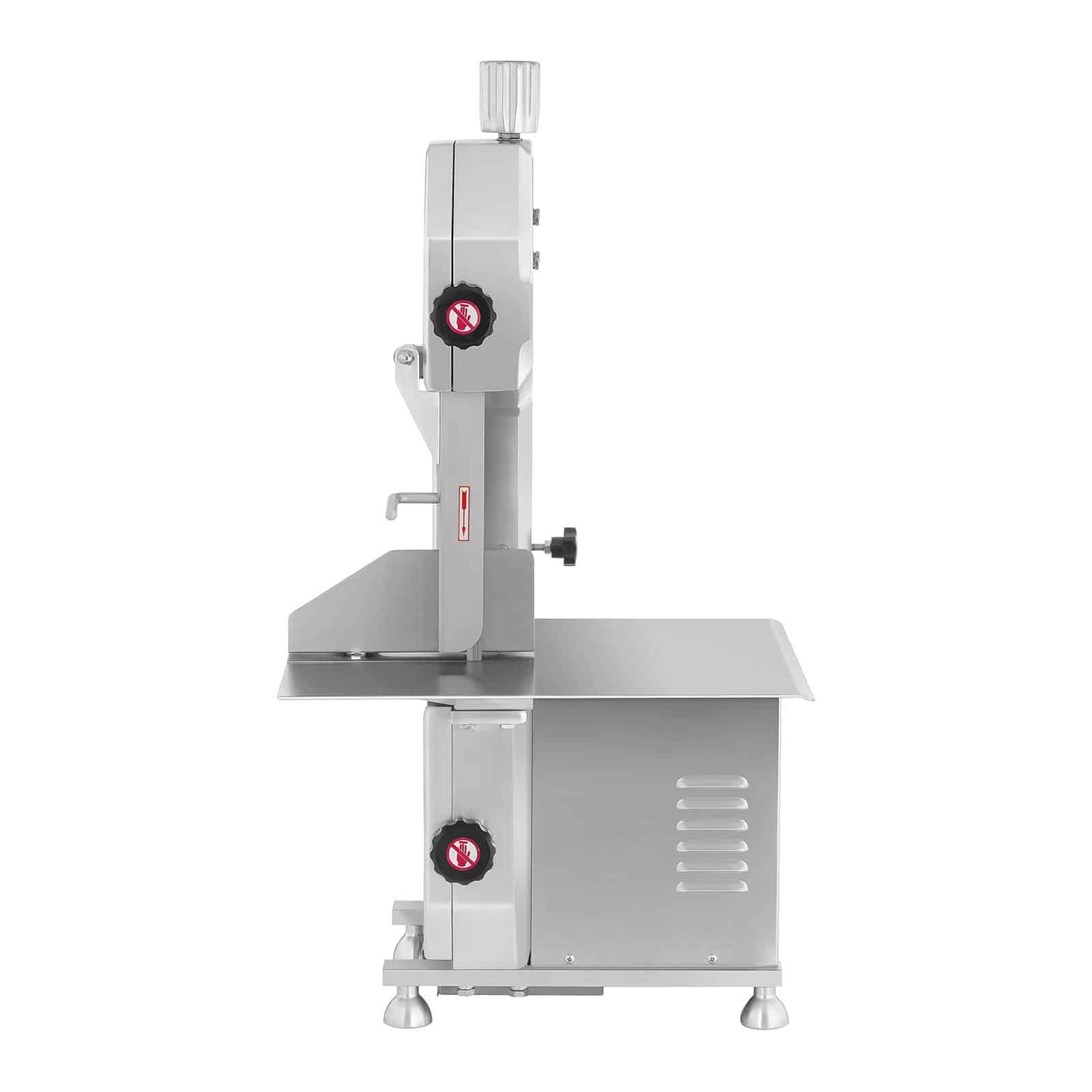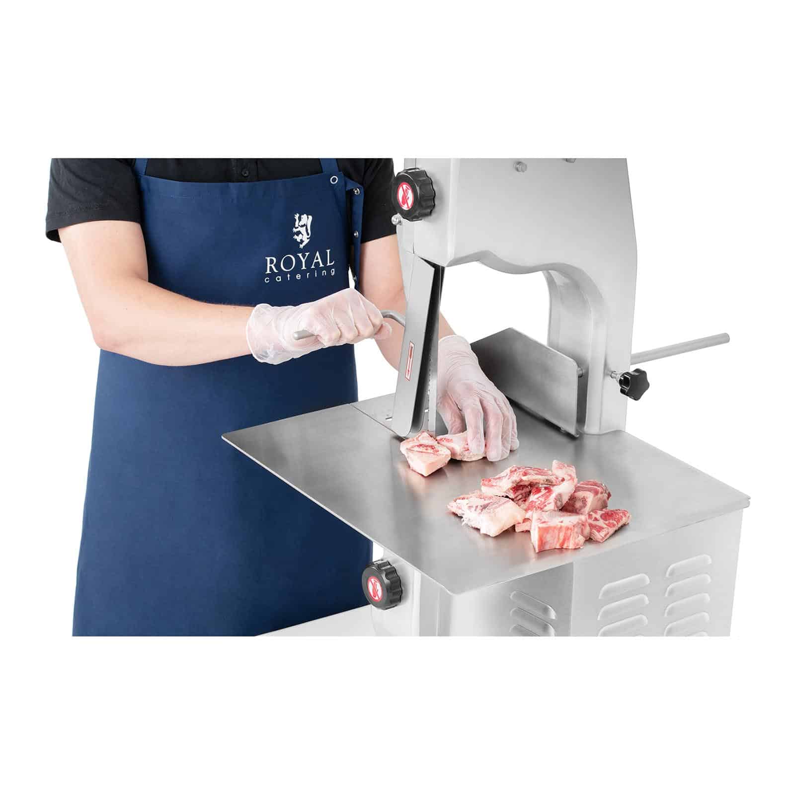 Fierăstrăul pentru oase – 1650 mm | RCBS-1650 de la Royal Catering este proiectat pentru utilizare profesională în bucătării comerciale, măcelării și restaurante, fiind ideal pentru porționarea alimentelor proaspete sau congelate. Datorită aluminiului de calitate, are un design elegant și ergonomic. Blatul de lucru este realizat din inox alimentar. Construcția bine gândită permite curățarea ușoară cu detergenți obișnuiți. Designul compact îl face perfect pentru utilizare pe masă. Fierăstrăul este prevăzut cu picioare din cauciuc antiderapante, asigurând stabilitate pe orice suprafață. Utilizarea aparatului este foarte simplă. Banda de tăiere se poate schimba rapid datorită sistemului integrat de tensionare. Are o lungime de 1650 mm, este fabricată din inox și permite tăieri curate și precise fără a sfărâma alimentele. Grosimea de tăiere se reglează ușor cu ajutorul unui buton rotativ, între 3 și 180 mm.