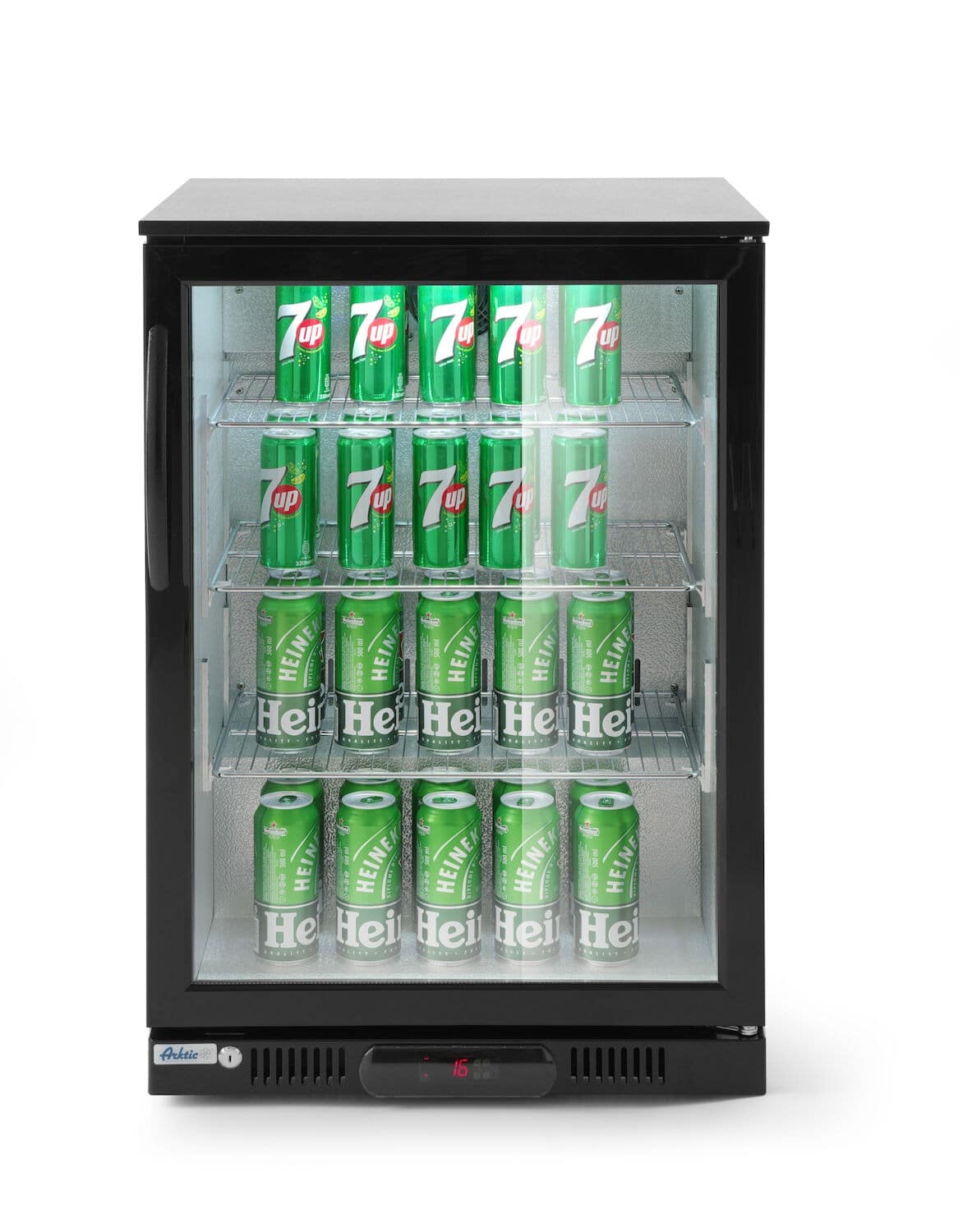 În acest frigider puteți expune și păstra la rece toate sticlele, dozele și gustările cu ușurință.