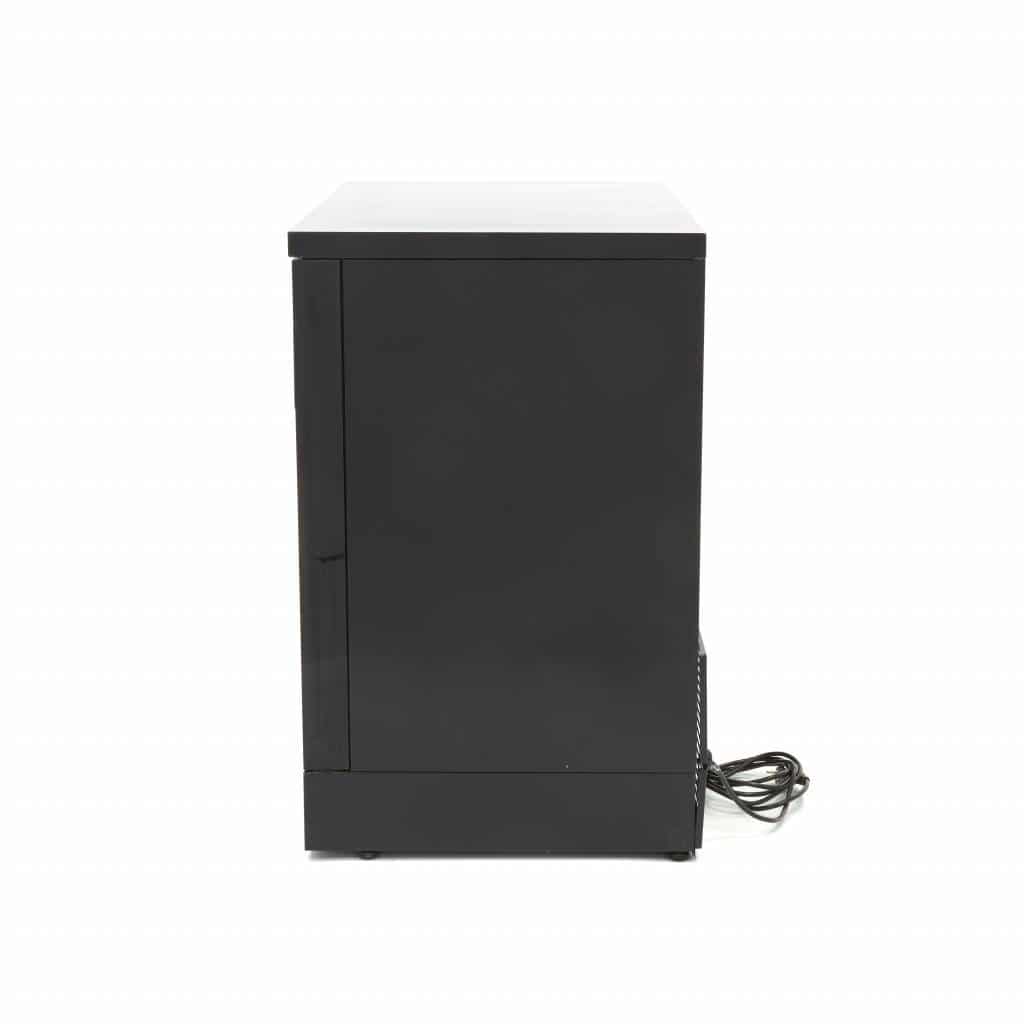 Dacă doriți să expuneți băuturile și gustările într-un mod profesional și să le păstrați reci, alegeți acest frigider elegant pentru băuturi, de culoare neagră. Un aparat compact, ușor de amplasat pe tejghea sau la bar, cu o capacitate de 227 l și dotat cu două uși glisante, fiecare cu geam dublu.