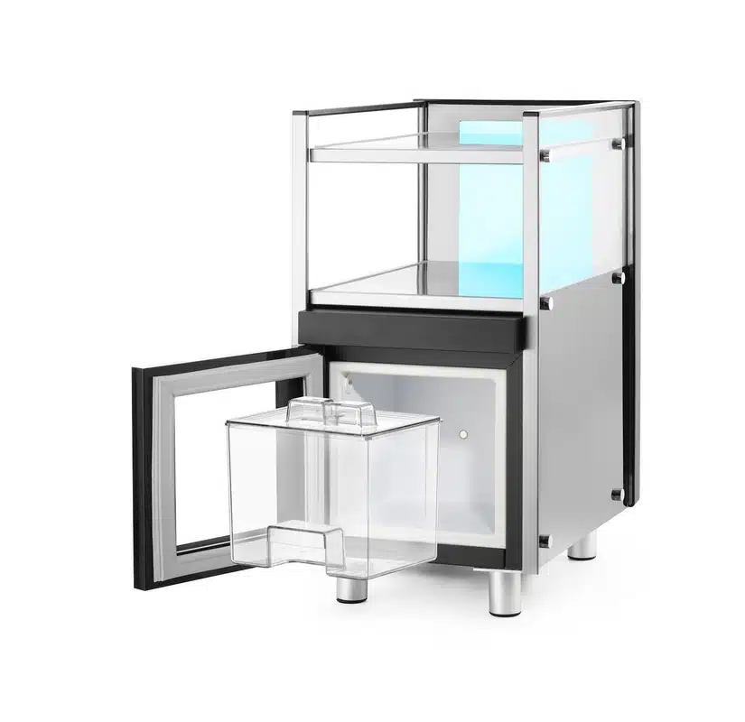 Frigiderul pentru lapte cu încălzitor de cești – 3,5 L | Hendi 209080 de la HENDI vă ajută să obțineți tot ce e mai bun din cafeaua dvs., oferind lapte mereu proaspăt și răcit, precum și cești încălzite la îndemână. Se poate conecta direct la orice espressor automat.