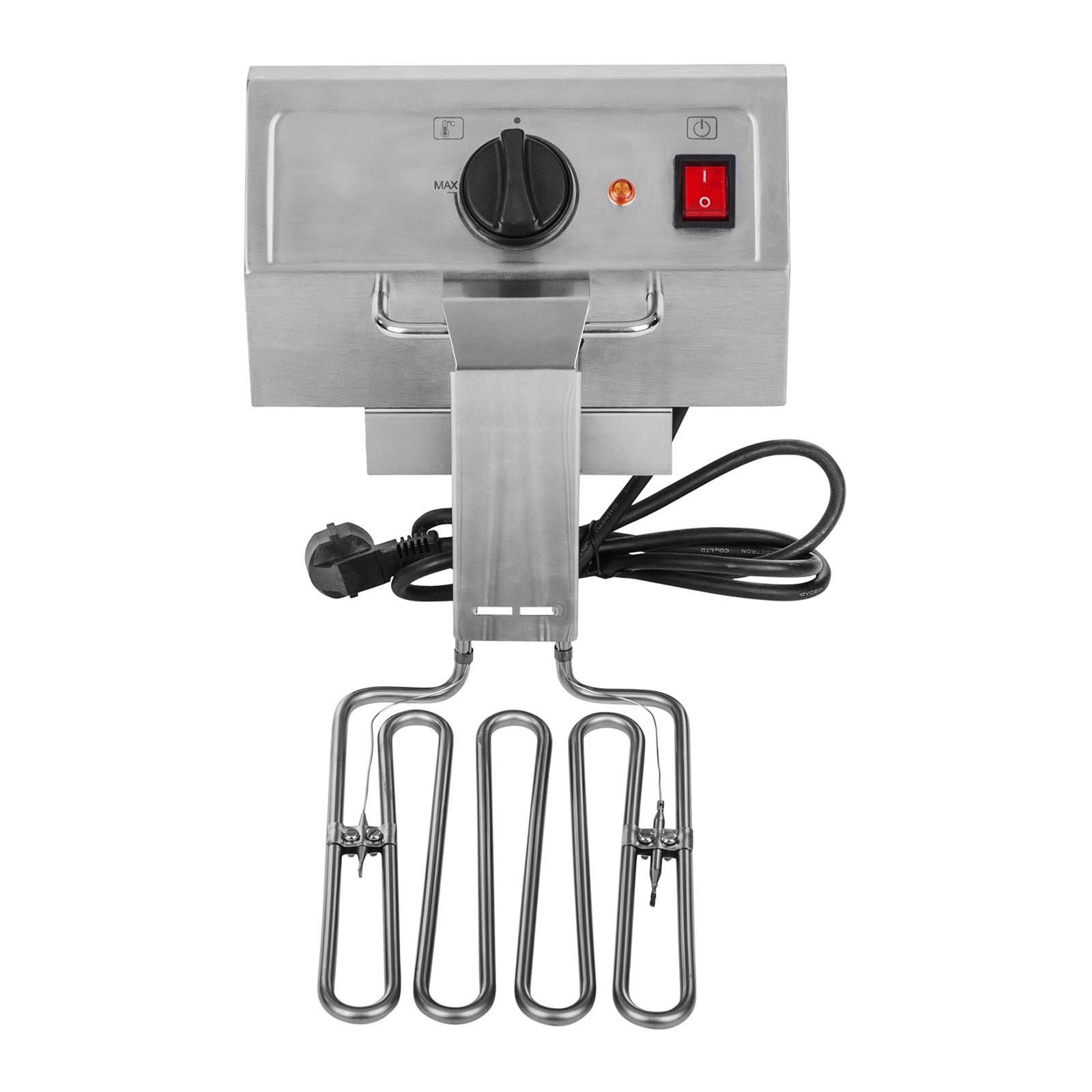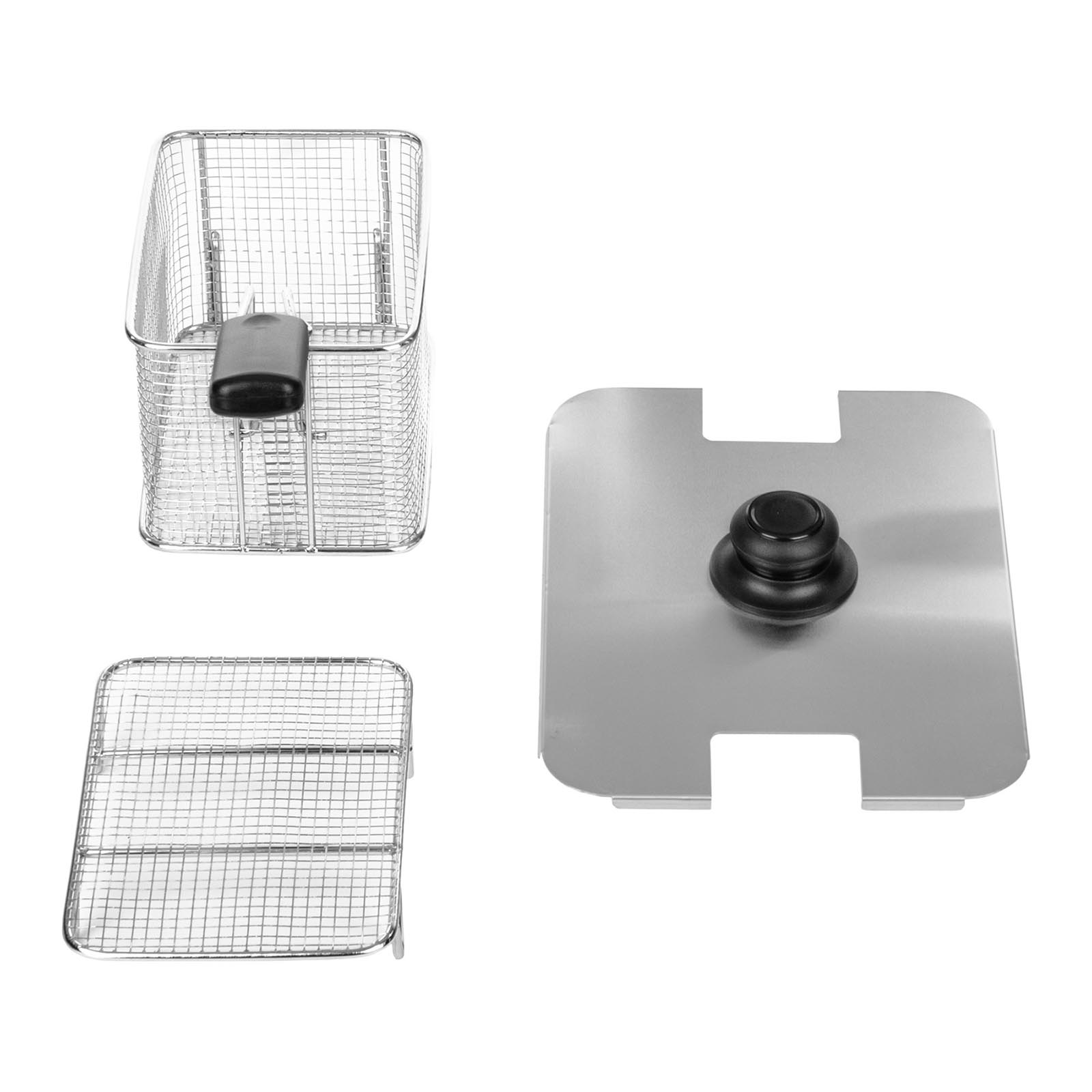Friteuza RCEF 08E-EGO cu o capacitate de 8 litri de la producătorul Royal Catering este destinată utilizării profesionale în unități gastronomice. Este fabricată din oțel inoxidabil de înaltă calitate, ceea ce îi oferă protecție eficientă împotriva coroziunii. Friteuza RCEF 08E-EGO este echipată cu un termostat modern de la brandul german E.G.O. Termostatele E.G.O. sunt printre cele mai avansate și fiabile de pe piață. Elementul de încălzire performant al friteuzei funcționează la o putere de 2500 W. Temperatura setată de termostat este menținută datorită controlului automat al temperaturii. Un alt avantaj al friteuzei este cuva detașabilă, care permite golirea uleiului sau spălarea cuvei în mașina de spălat vase. Producătorul a conceput cuvele cu margini rotunjite pentru a facilita curățarea. Pentru a preveni arderea resturilor care cad din coșul de prăjire, friteuza este prevăzută în partea de jos cu zone reci speciale.