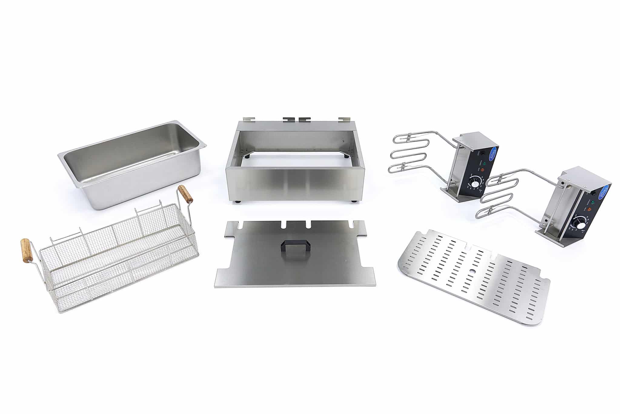 - Friteuza electrică este compusă din 2 elemente de încălzire independente și 1 coș de prăjire.