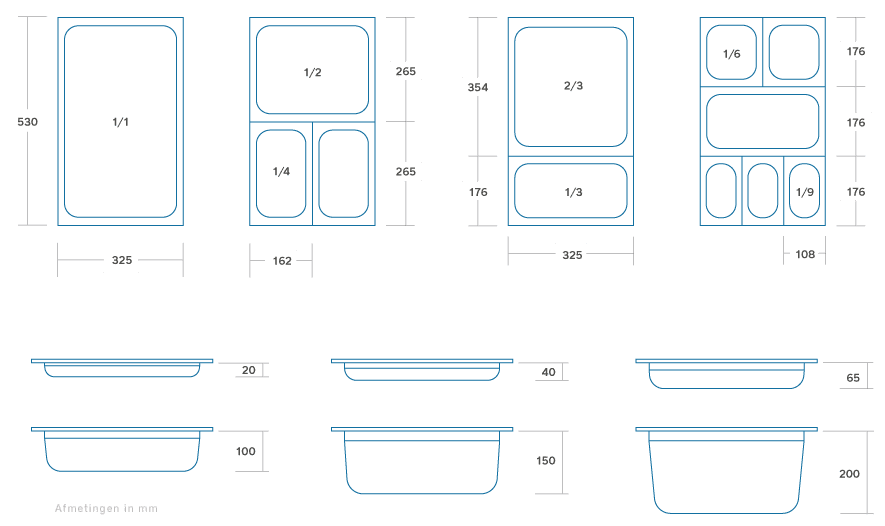 - Potrivite pentru cuptor, frigider, bain-marie și chafing dish