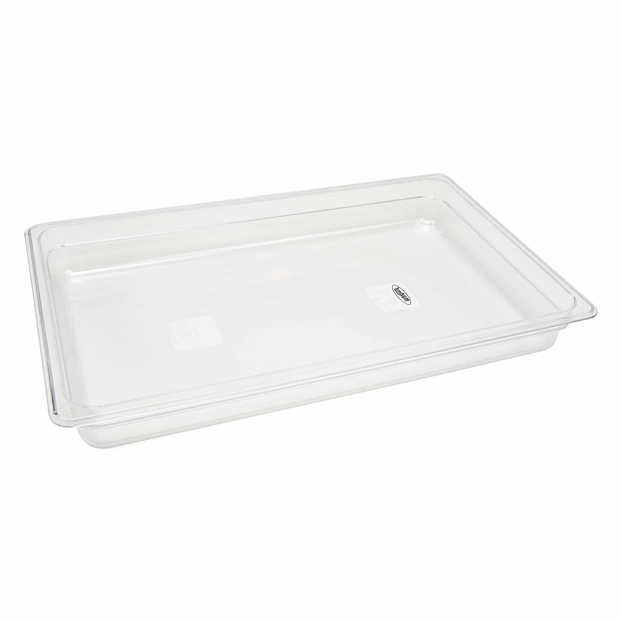 Aceste tăvi Gastronorm transparente și robuste din policarbonat pot fi echipate cu capac standard sau capac cu decupaj pentru lingură. Tăvile GN din policarbonat sunt practic indestructibile și rămân reci la atingere. Datorită transparenței, conținutul este vizibil imediat. Tăvile ușoare din policarbonat sunt stivuibile și potrivite pentru mașina de spălat vase.