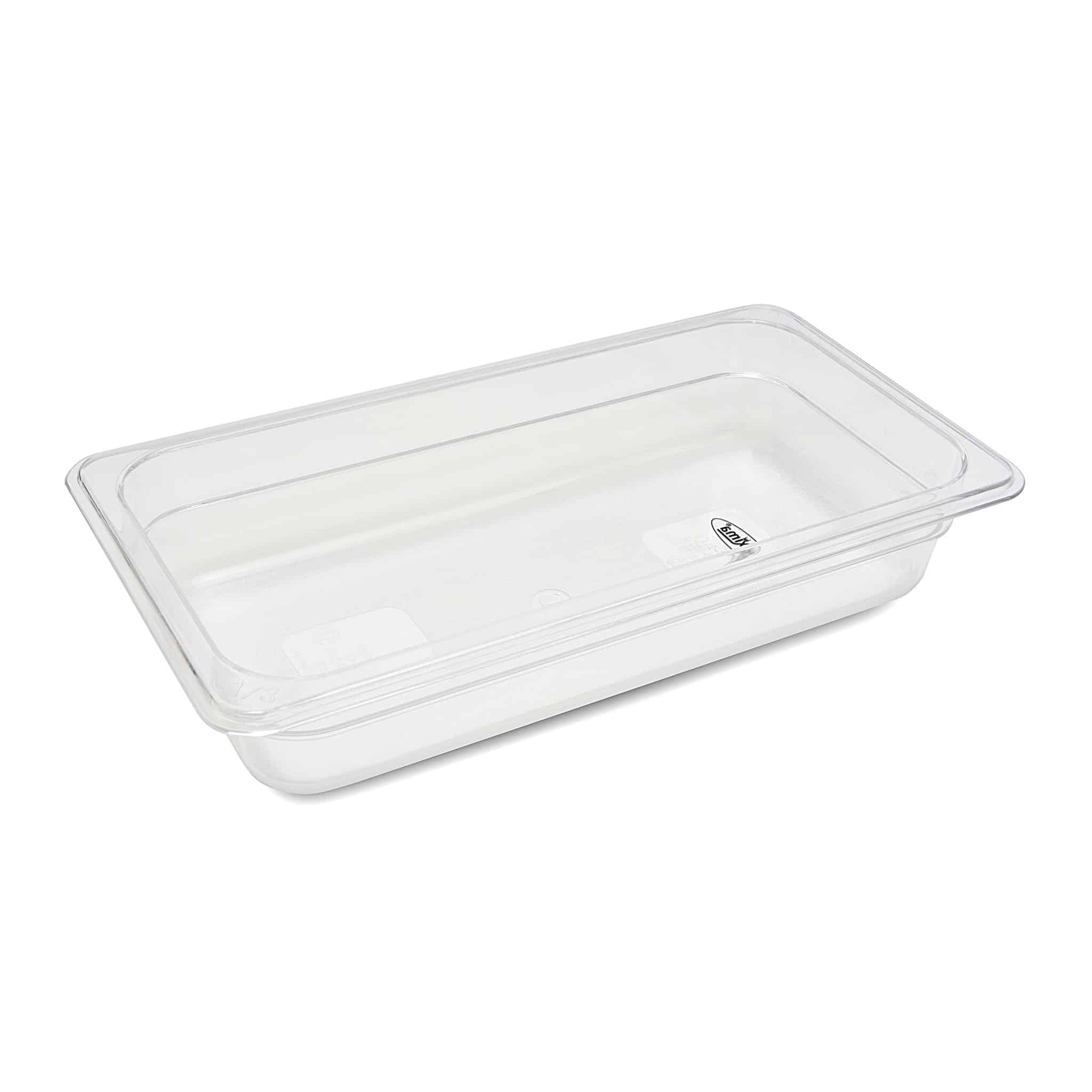 Aceste tăvi Gastronorm transparente și robuste din policarbonat pot fi echipate cu capac standard sau capac cu decupaj pentru lingură. Tăvile GN din policarbonat sunt practic indestructibile și rămân reci la atingere. Datorită transparenței, conținutul este vizibil imediat. Tăvile ușoare din policarbonat sunt stivuibile și potrivite pentru mașina de spălat vase.