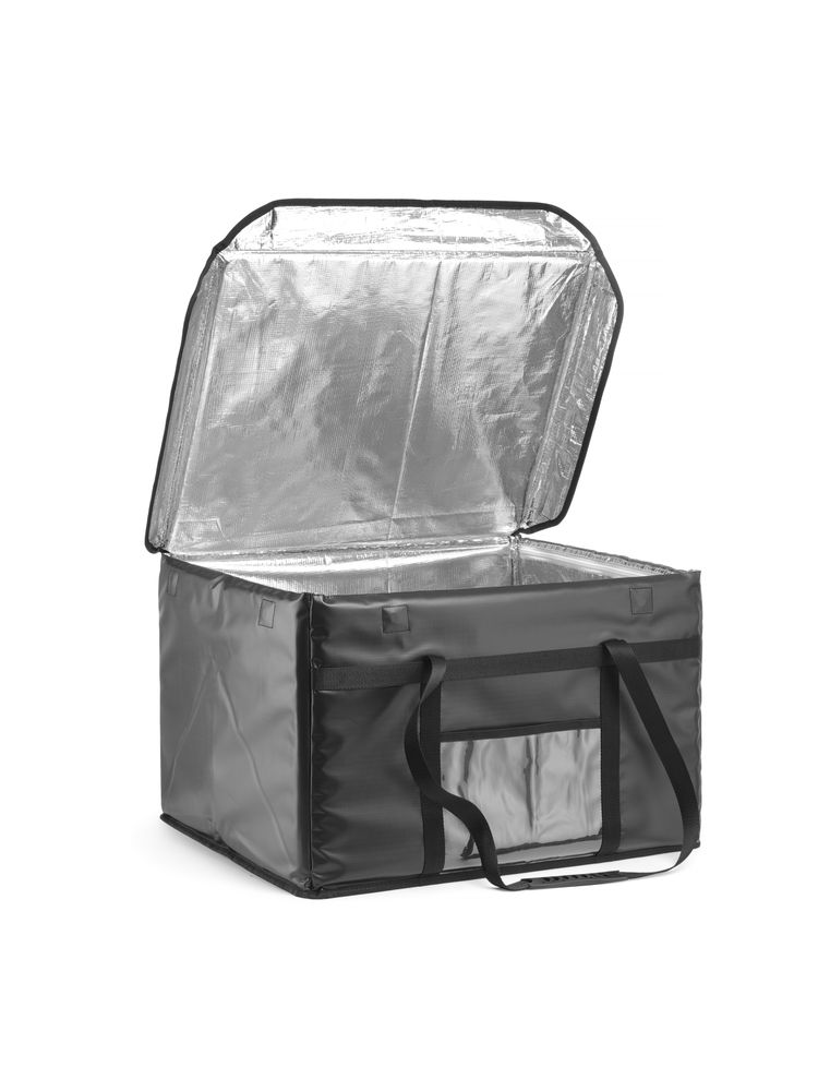 Destinată firmelor de catering și livrare mâncare. Izolația de înaltă calitate, cu trei straturi, menține preparatele calde sau reci la temperatura potrivită, asigurând satisfacția clienților: poliester rezistent și impermeabil la exterior, strat interior din spumă PE ușor de curățat, folie de aluminiu la interior pentru izolare și reflectarea căldurii, ușor de întreținut.