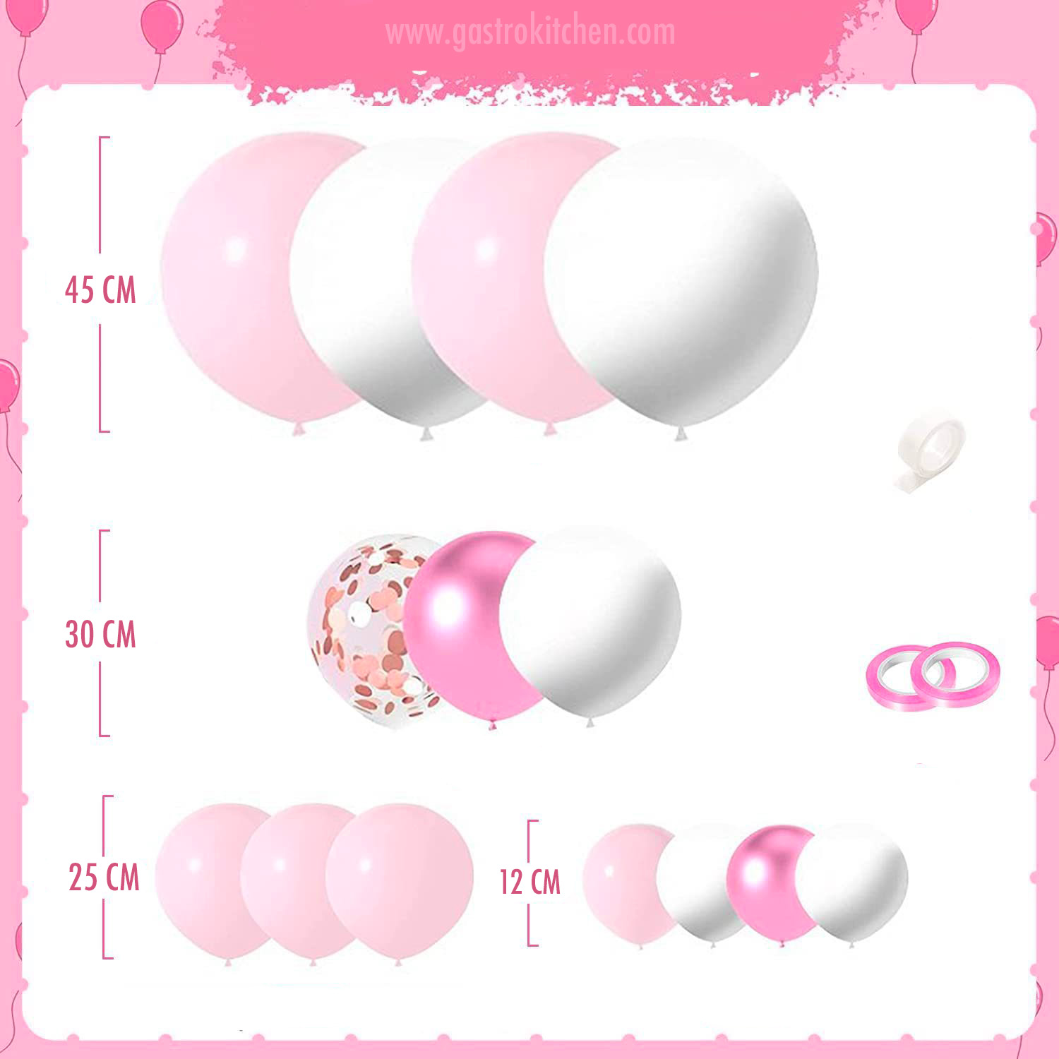 Set 107 baloane roz-albe – ghirlandă | Gastrokitchen