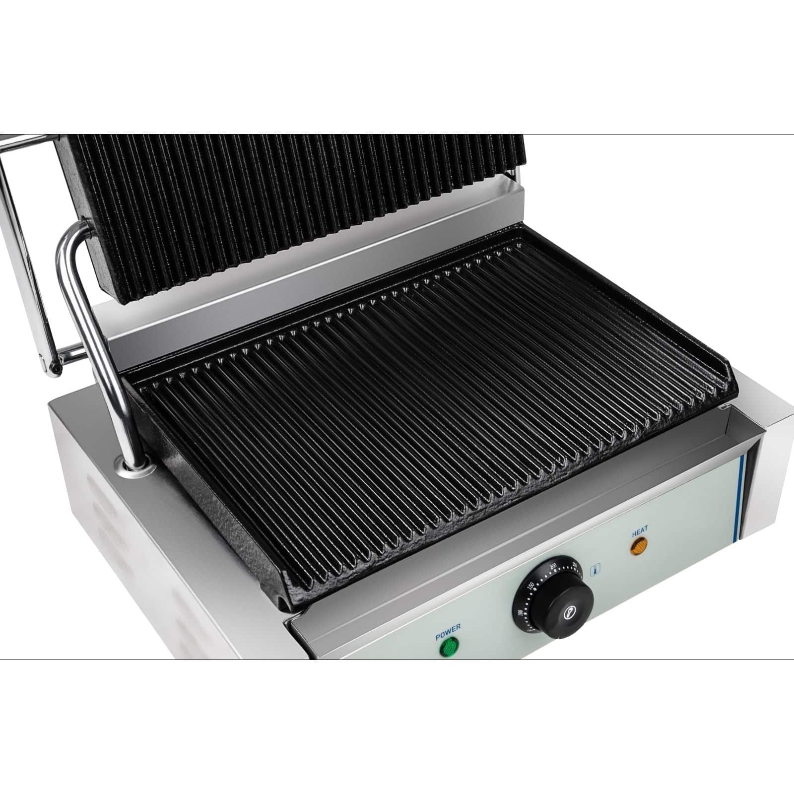 Cu acest grătar puteți prepara cu grijă carne, legume, sandvișuri și multe alte preparate. Controlul procesului de gătire este eficient datorită reglării continue a temperaturii și celor două lămpi de control pentru putere și încălzire.