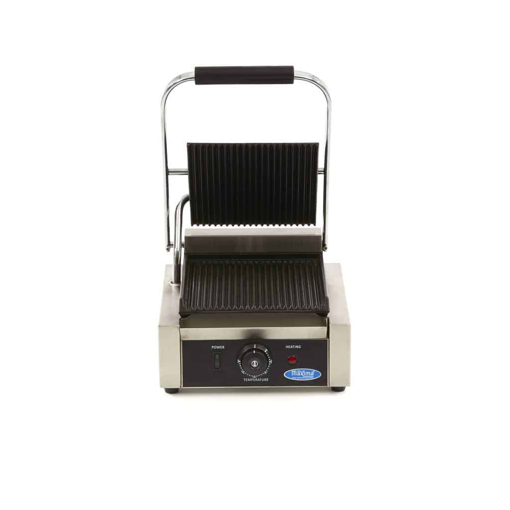 Grătarul de contact Maxima – MCG GR este un grătar profesional de contact, echipat cu plăci grele din fontă. Mânerul și carcasa sunt realizate integral din inox. Acest model MCG GR de la Maxima este prevăzut și cu o tavă de colectare a grăsimii foarte practică. Grătarul de contact este alegerea ideală pentru diverse preparate, fiind extrem de util în bucătăriile profesionale. Se curăță ușor, deoarece vine cu o perie de curățare inclusă, pentru a menține igiena la cel mai înalt nivel. Mai jos găsiți toate caracteristicile grătarului de contact Maxima – MCG GR: