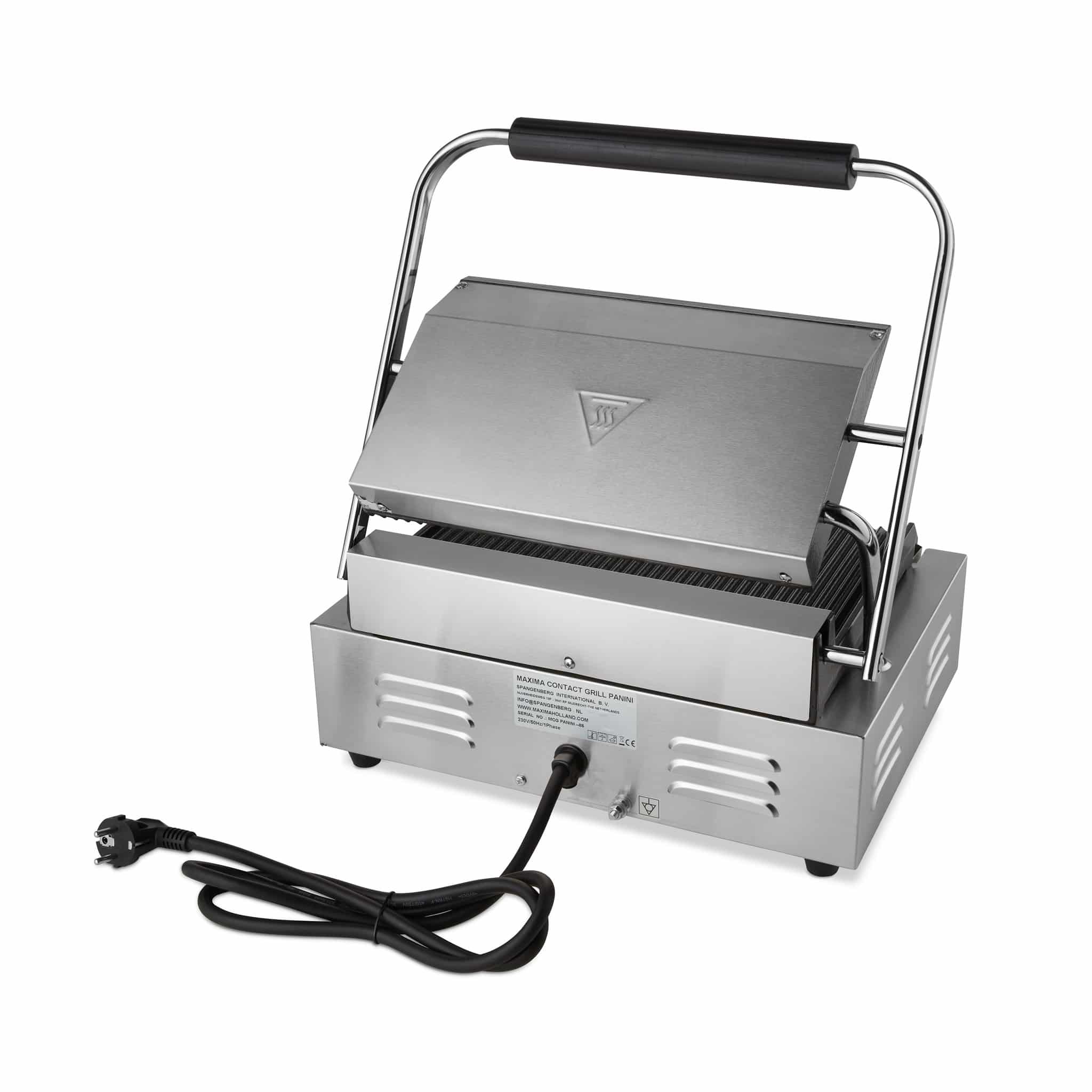 Folosiți acest grătar de contact profesional pentru a prepara panini delicioase sau sandvișuri mari. Pe cele două plăci din fontă puteți găti și alte preparate, precum carne, legume sau pește. Datorită suprafeței striate, acest grătar de contact este extrem de versatil. Atât placa superioară, cât și cea inferioară sunt striate, oferind alimentelor un aspect apetisant cu dungi. Acest grătar de contact este ideal pentru orice bucătărie profesională și, datorită materialelor de calitate, rezistă la utilizare intensivă zilnică.