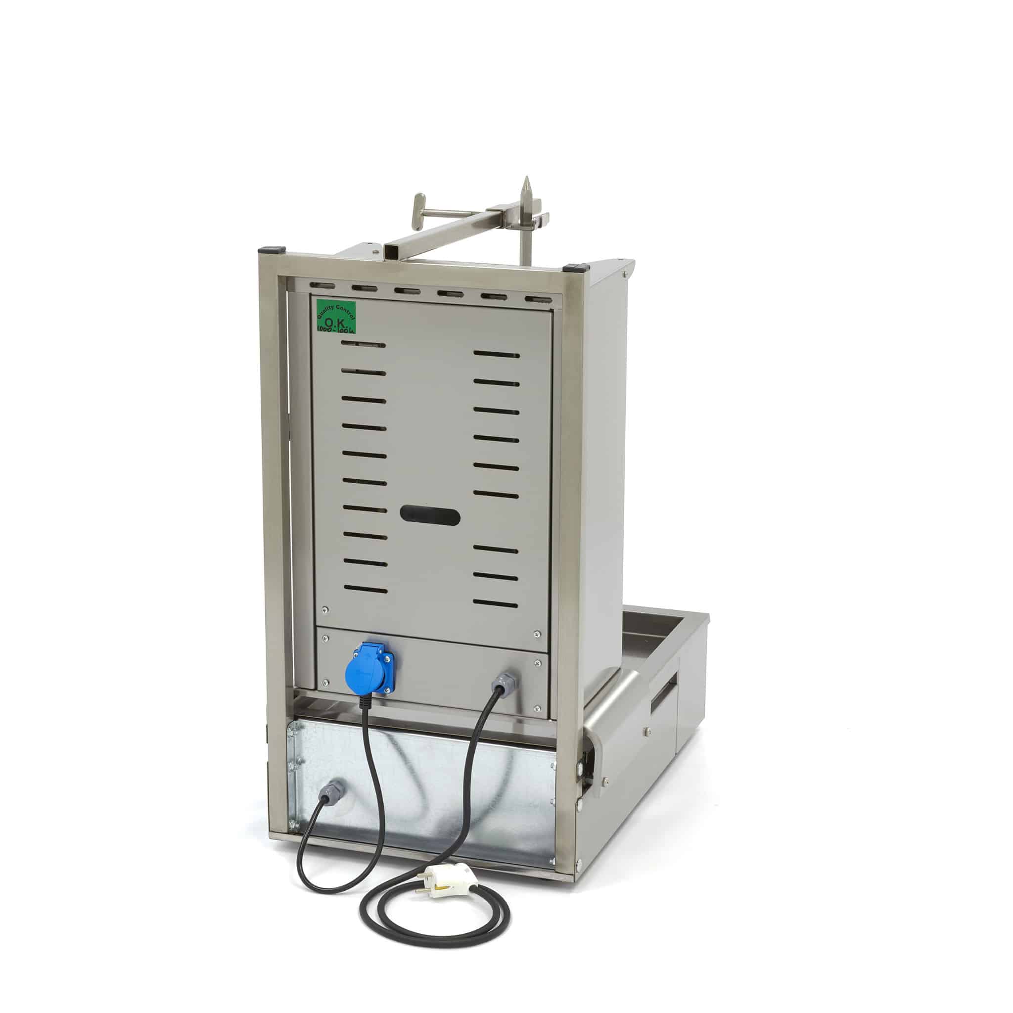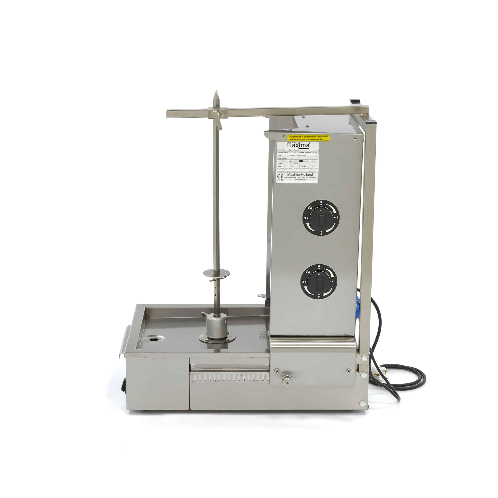 Maxima Grătar kebab cu 2 arzătoare electrice și motor poziționat în partea de jos. Grătarul este ideal pentru prepararea delicioaselor gyros, kebab sau shawarma. Standardul include panouri reflectorizante din inox și tavă de colectare din inox cu filtru.