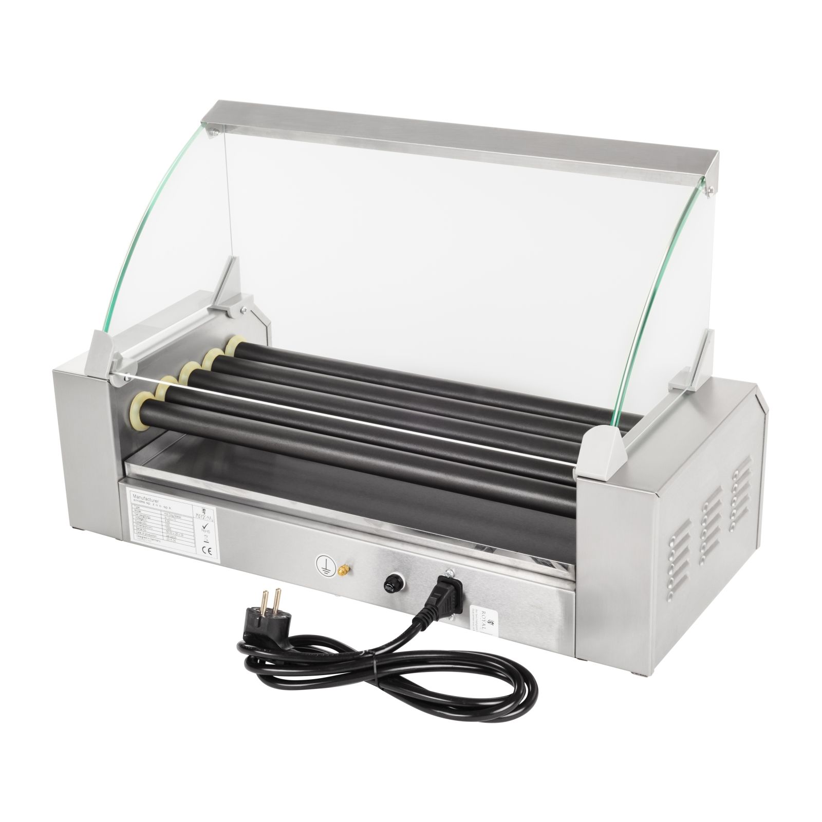 Grătarul pentru crenvurști RCHG-5T de la Royal Catering este proiectat special pentru utilizare profesională în bucătării comerciale și unități HoReCa precum fast-food-uri sau restaurante. Datorită celor 5 role de încălzire puternice cu o putere totală de 1000 wați, permite prepararea rapidă și eficientă a crenvurștilor. Este fabricat din oțel inoxidabil, fiind foarte robust și rezistent. Datorită stratului de teflon și tăvii detașabile pentru grăsime, este foarte ușor de folosit și curățat.