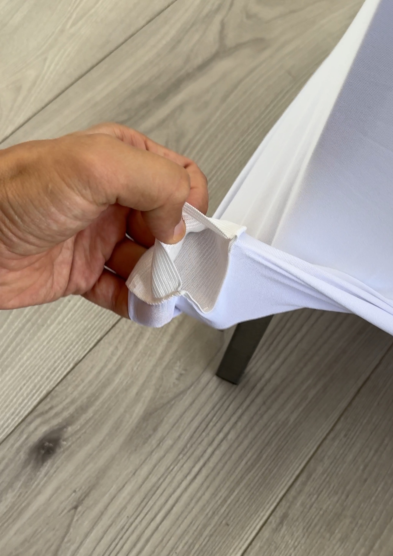- Buzunare pentru picioarele scaunului: Husa este prevăzută cu patru buzunare elastice în partea de jos, pentru fixarea picioarelor scaunului. Acest design asigură o prindere fermă și protecție completă pentru scaun. Fixarea sigură prelungește durata de viață a husei, fiind ideală pentru utilizare repetată.