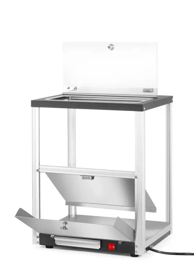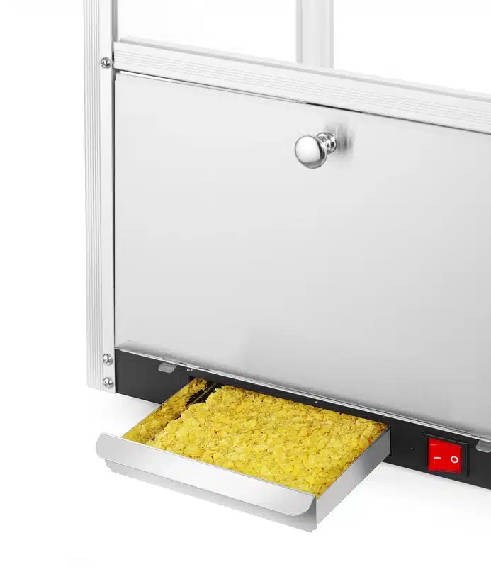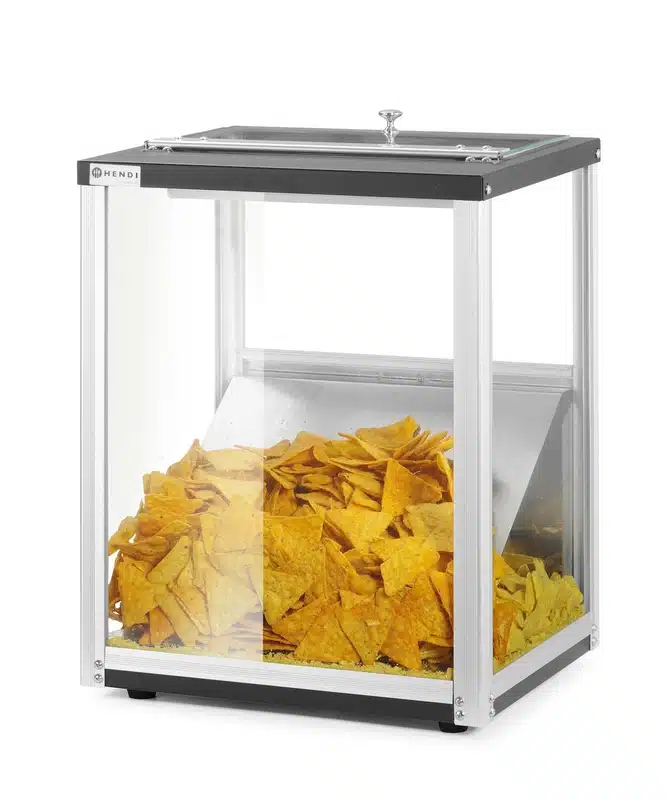 Încălzitorul de nachos – 500 W | Hendi 282779 menține nachos la o temperatură constantă, astfel încât acestea rămân crocante și perfecte pentru servirea cu sosuri. Este potrivit și pentru popcorn. Acest încălzitor pentru nachos este fabricat din materiale de înaltă calitate: oțel inoxidabil și sticlă temperată fumurie, care împreună cu accentele negre elegante oferă un design modern și stilat.