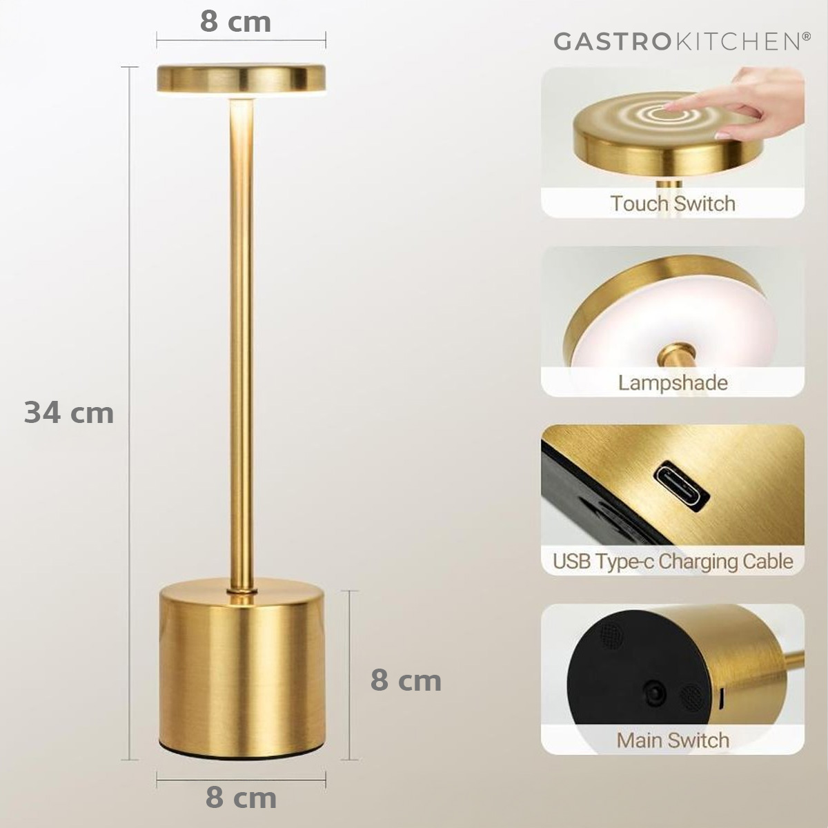 Lampă de masă LED USB – reîncărcabilă – 3 niveluri de intensitate – auriu | Gastrokitchen