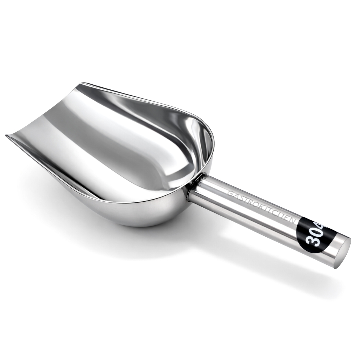 Lingura din inox pentru ingrediente vrac este un accesoriu practic pentru dozarea ingredientelor în bucătării profesionale sau acasă. Datorită construcției rezistente și mânerului ergonomic, este ușor de folosit atât pentru gheață, cât și pentru diverse ingrediente vrac precum făină, zahăr, orez, condimente, nuci sau dulciuri.