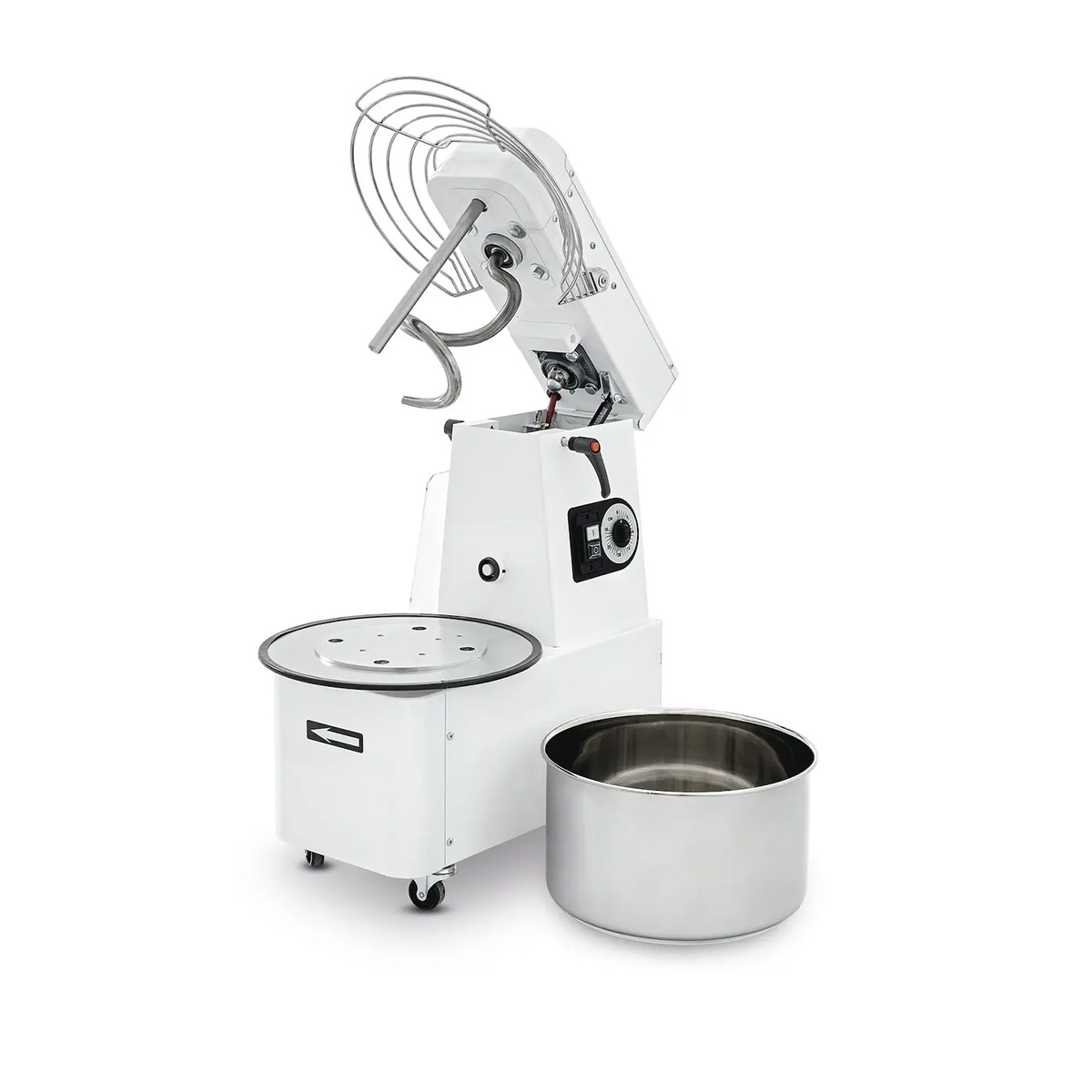 Malaxor spiral cu cap rabatabil și cuvă detașabilă de la Prismafood frământă eficient aluaturi grele până la 35 kg/h. Forma spirală asigură un aluat perfect omogen. Ideal pentru pizzerii sau brutării.