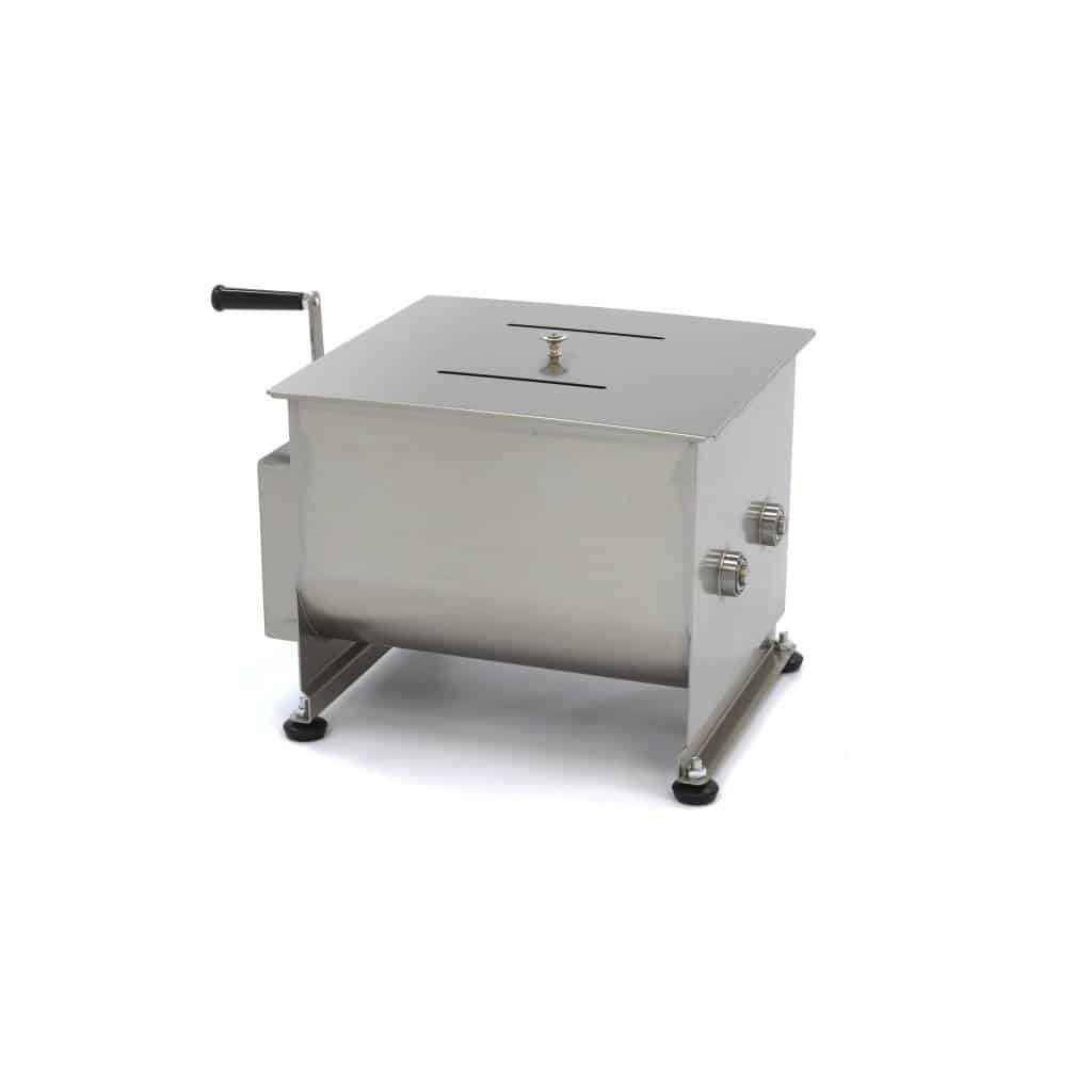 Malaxor carne pentru cârnați 30 litri – double | 09368000 este un malaxor manual robust pentru carne, cu carcasă din inox, melc dublu pentru o amestecare mai eficientă și capac inclus. Echipament fiabil pentru uz profesional. Potrivit pentru măcelari sau pentru procesarea cărnii acasă. Capacitatea malaxorului este de 22,5 kg carne.