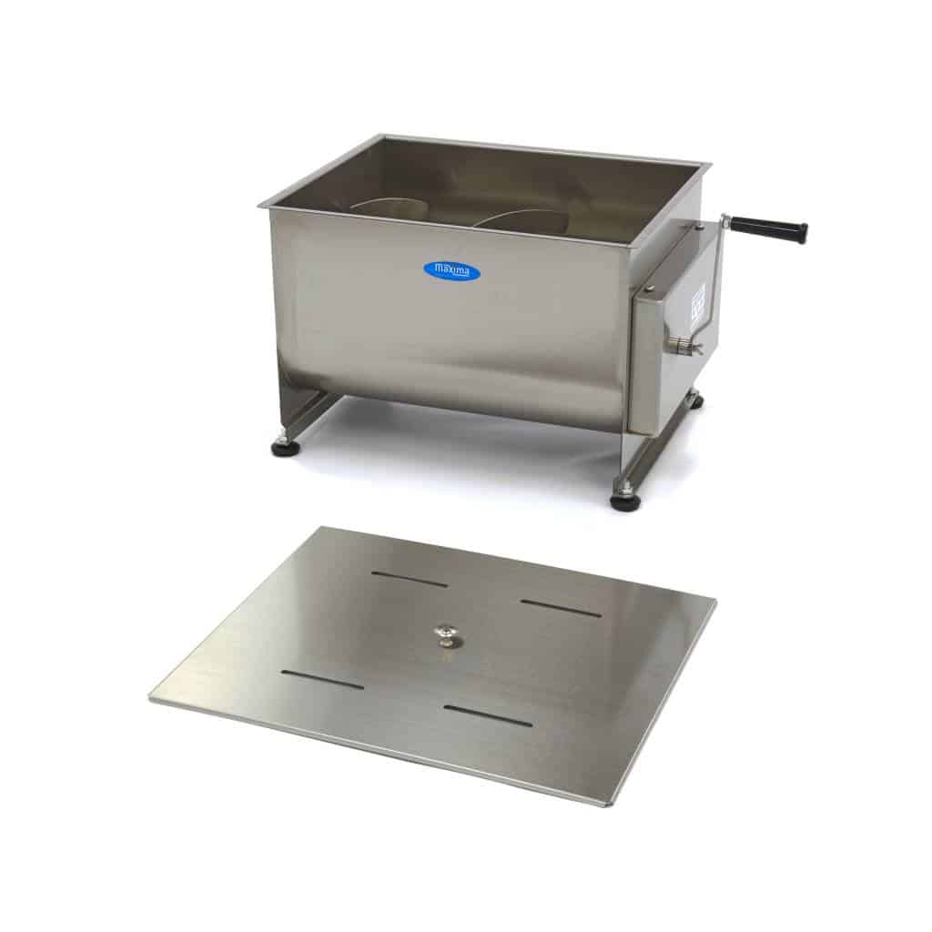 Malaxor carne pentru cârnați – 50 litri – double | Maxima 09368002 este un malaxor manual puternic, cu carcasă din inox, melc dublu pentru amestecare eficientă și capac. Echipament fiabil pentru uz profesional. Potrivit pentru măcelari sau pentru procesarea cărnii acasă. Capacitatea malaxorului este de 37,5 kg carne.