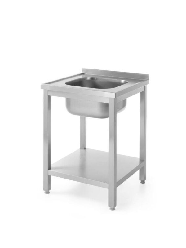 Chiuvete, lavoare, mese de spălatMasă cu chiuvetă și raft – asamblare cu șuruburi – 600x600x850 mm | Hendi 811856