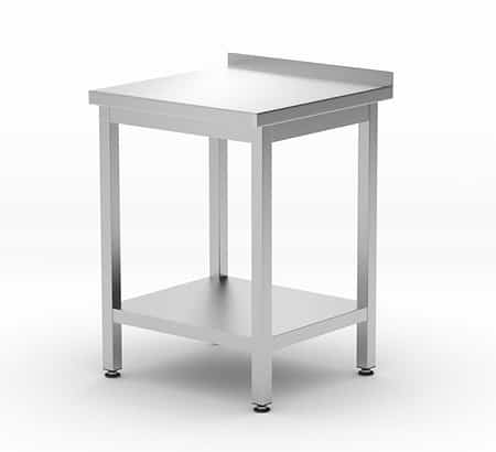 - Masă din inox cu suprafață de lucru generoasă și bordură spate care protejează peretele de murdărie