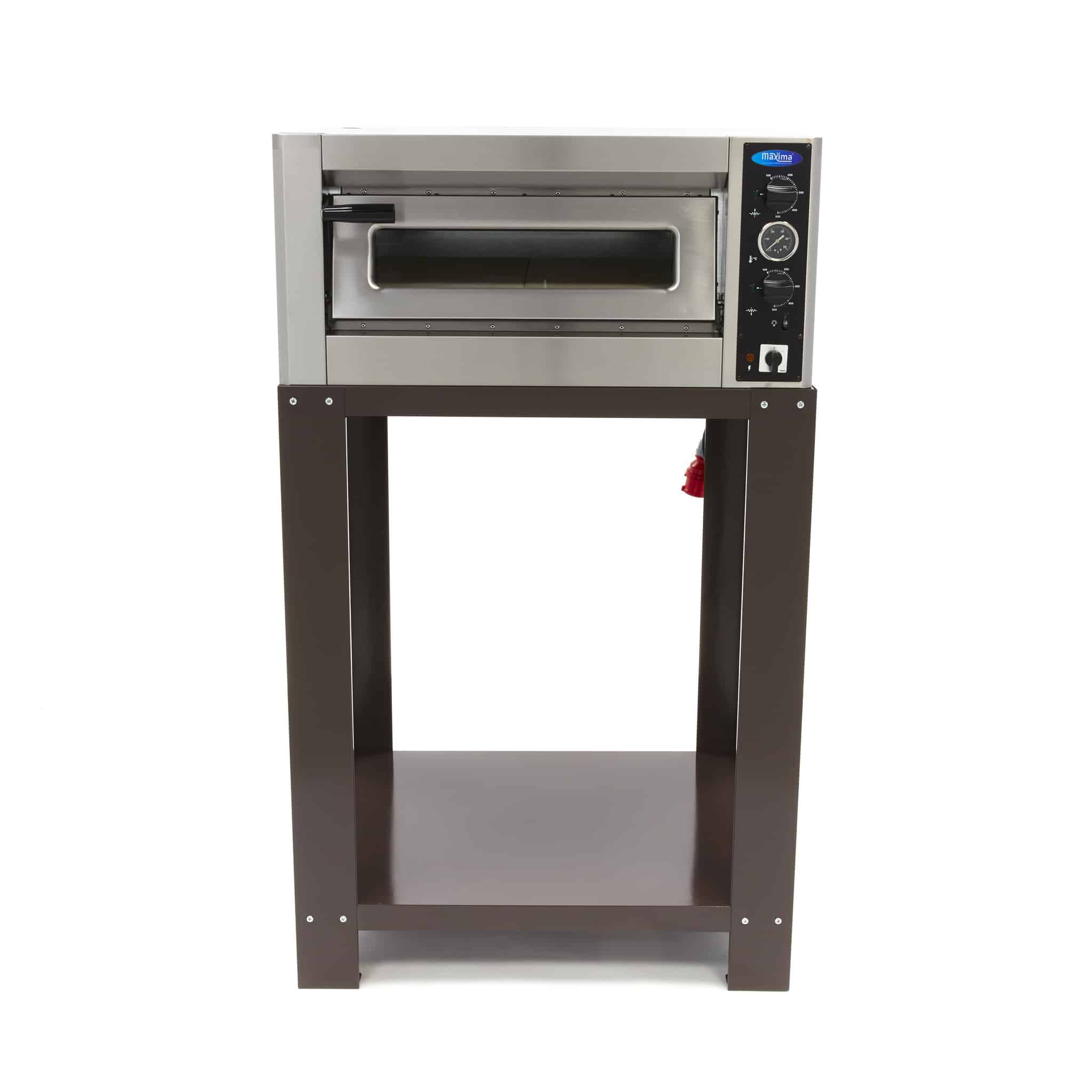 Masă pentru cuptor de pizza – 4 x 30 cm | Maxima 09370080 este o masă ideală pentru cuptorul de pizza Maxima Deluxe 4 x 30 cm 400 V, având dimensiunile 900 x 770 x 1115 mm.
