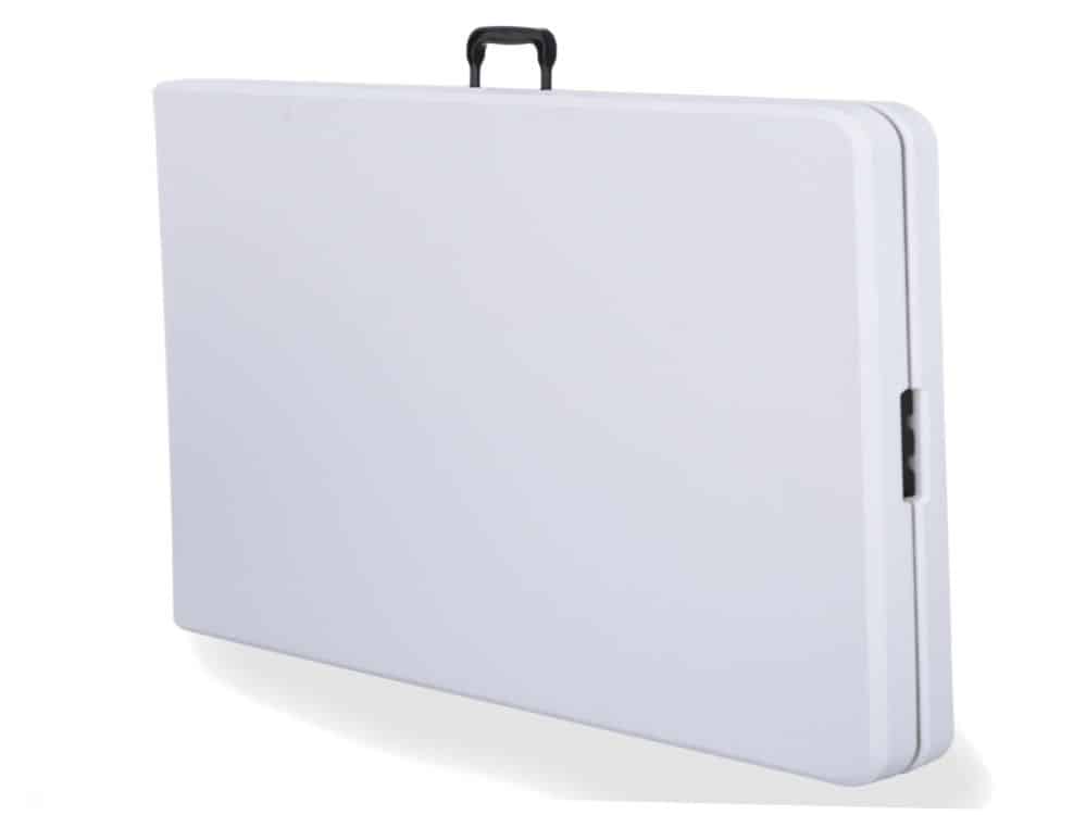 Masă pliabilă pentru catering, de grădină – albă, 240×70 cm | Model: ZK-240 este soluția ideală pentru orice eveniment în aer liber! Blatul mesei este realizat din plastic rezistent, cu dimensiuni practice (240 x 70 cm), oferind un confort ridicat la utilizare. Datorită sistemului de pliere rapidă în valiză cu mâner practic, transportul sau depozitarea nu reprezintă o problemă. Masa este perfectă nu doar acasă, ci și pentru deplasări sau evenimente. Structura solidă din oțel asigură stabilitate. Un sistem suplimentar de blocare previne plierea accidentală. Picioarele mesei sunt prevăzute cu capace din cauciuc pentru a proteja suprafețele împotriva zgârieturilor. Întreaga masă este realizată cu atenție la detalii, într-o culoare albă atractivă.