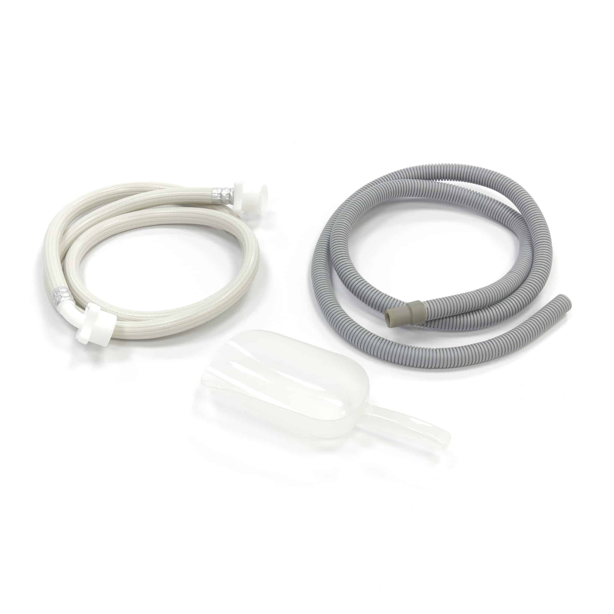 - Furtunurile de alimentare incluse permit conectarea aparatului direct la rețeaua de apă potabilă, astfel încât nu trebuie să umpli rezervorul manual de fiecare dată.