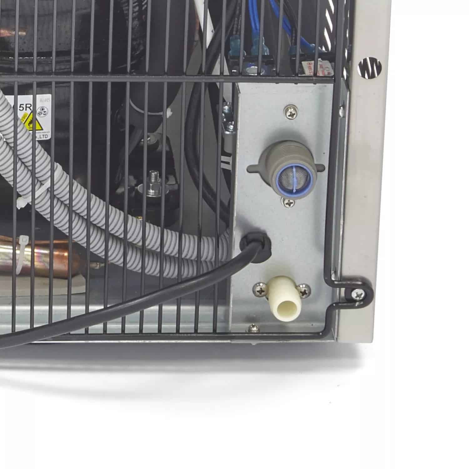 - Mașina de gheață se conectează ușor la orice sursă de apă potabilă cu furtunurile incluse, astfel nu este nevoie să alimentați manual cu apă, economisind timp și efort.