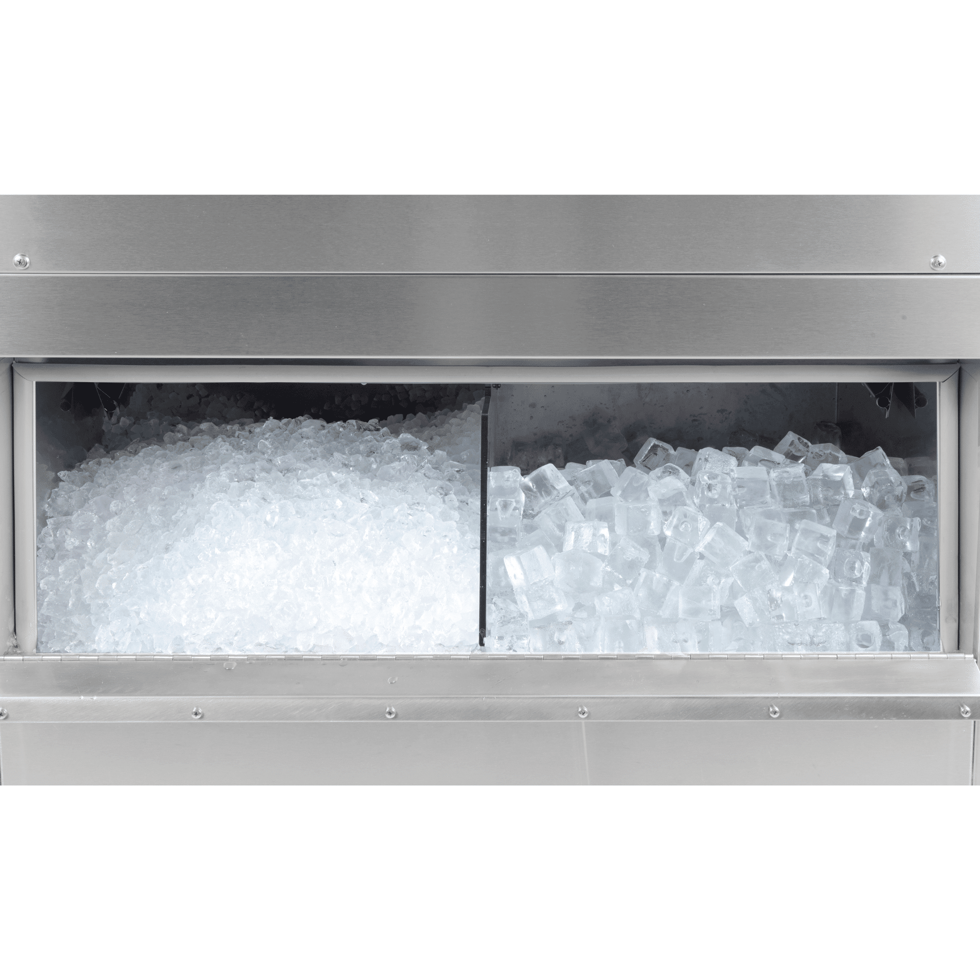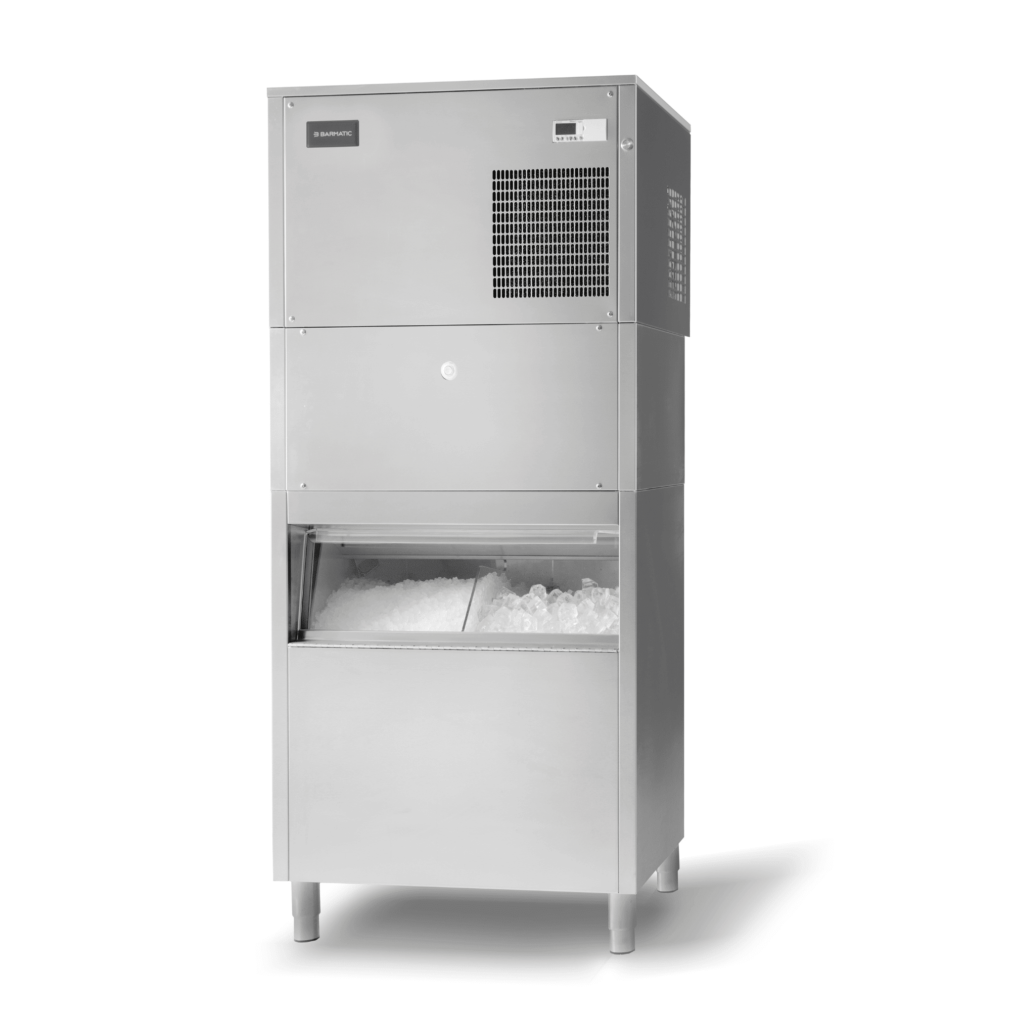 Este un echipament care oferă nu doar cuburi de gheață, ci și gheață zdrobită. Astfel, acoperă o gamă largă de nevoi: furnizează gheață perfectă pentru băuturi, smoothie-uri, deserturi, dar și pentru răcirea sau prezentarea produselor. Datorită comutatorului prioritar de pe panoul frontal, poți controla producția de cuburi de gheață sau gheață zdrobită în funcție de cerere. Procesul de producție a gheții cu sistem de injecție este fiabil, foarte eficient și, datorită consumului redus de apă, și economic. Carcasa echipamentului este realizată integral din oțel inoxidabil de calitate. Pe lângă durabilitate, această caracteristică este foarte importantă din punct de vedere igienic, deoarece facilitează menținerea curățeniei. Un aspect important este că utilizatorul poate îndepărta cu ușurință complet cartușul unității de injecție din mașina de gheață pentru curățare și dezinfectare. Firma Firmness produce cuburi de gheață perfect igienice, cristaline și transparente, în format cubic cu latura de