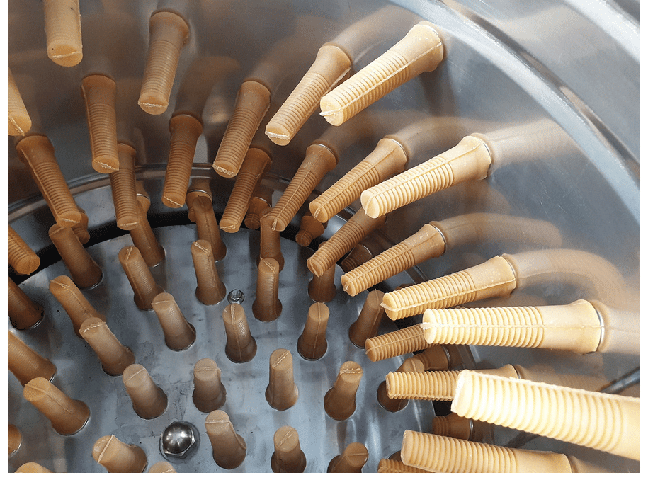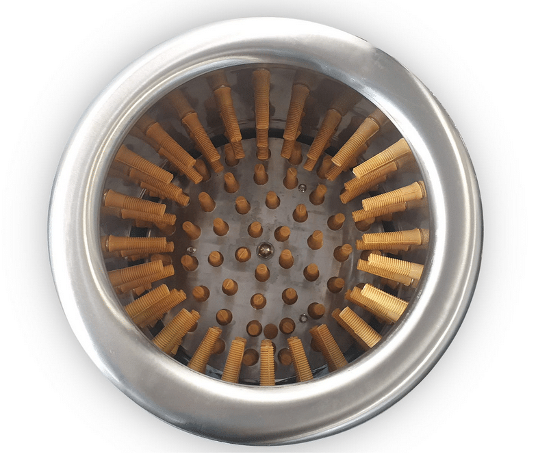 Mașina de jumulit păsări cu codul 570050001 este un echipament profesional pentru crescători, precum și pentru ferme mici și mijlocii. Acest dispozitiv este un ajutor indispensabil și performant pentru oricine se ocupă de sacrificarea păsărilor. Permite jumulirea rapidă, curată și sigură a păsărilor, fără a deteriora pielea. Procesul de jumulire este extrem de eficient și atât de curat încât nu poate fi atins manual același rezultat. Într-o oră poate procesa aproximativ 270 kg de pui, ceea ce reprezintă o performanță excelentă. Acest lucru se datorează vitezei tamburului – de la 1400 rotații pe minut, valoare optimă pentru acest tip de utilaj. Cu o putere de 1,5 kW, poate jumuli 3-4 pui pe minut, iar eficiența ajunge până la 98% din păsări.