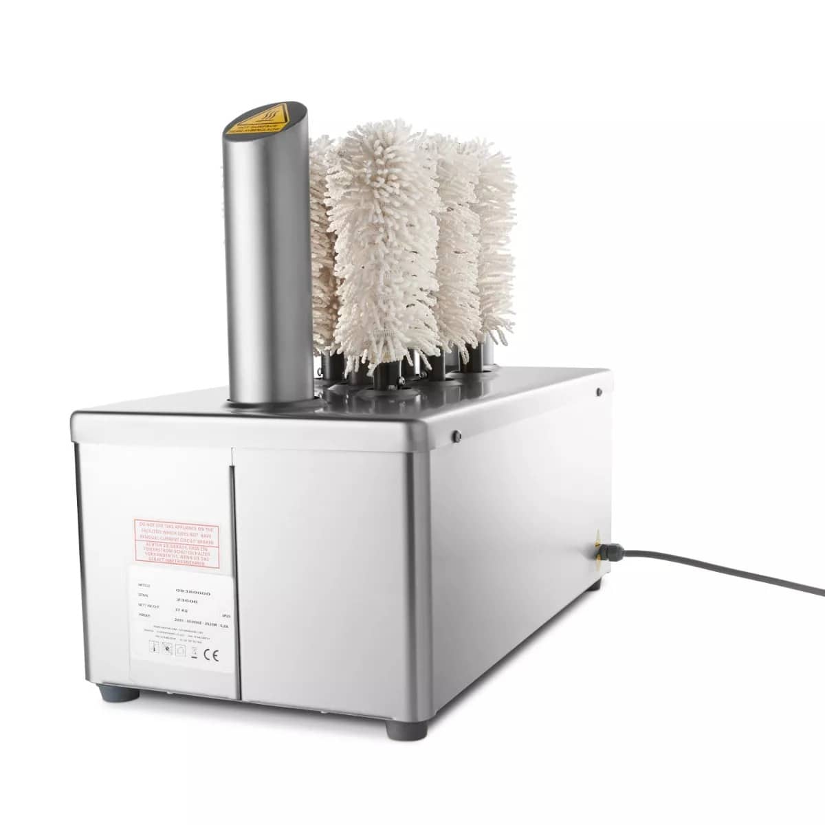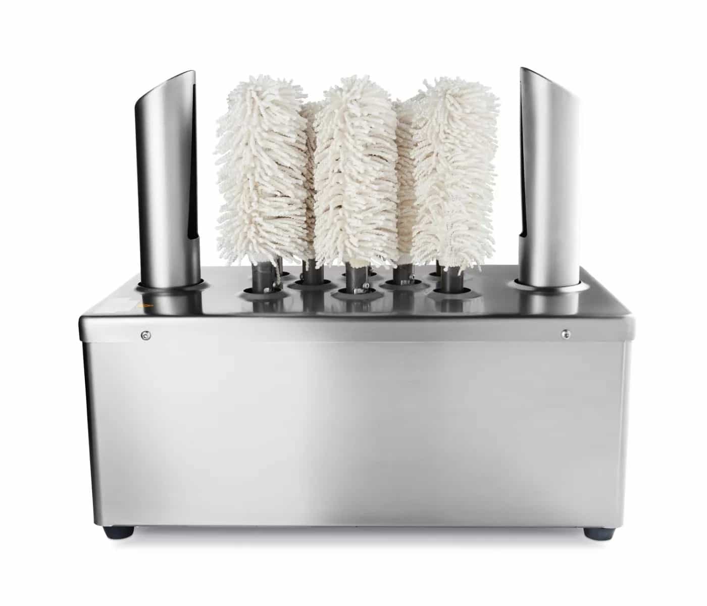 - Această mașină de lustruit pahare pregătește perfect paharele scoase direct din mașina de spălat vase.
