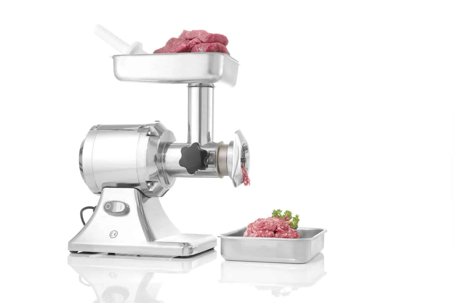 - Carcasă, pâlnie și tavă pentru carne din oțel inoxidabil