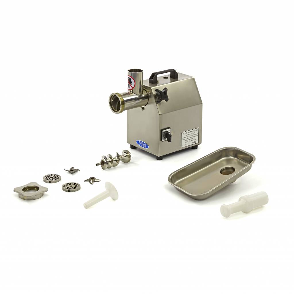Dacă doriți să serviți cea mai bună carne tocată în restaurantul dvs. sau să o vindeți în măcelăria dvs., această mașină profesională de tocat carne cu carcasă și tavă din inox este alegerea ideală. Pe lângă tocarea cărnii, poate fi folosită și pentru prepararea hamburgerilor, cârnaților sau umpluturilor. Mașina de tocat carne poate fi folosită chiar și pentru legume sau nuci, fiind un echipament extrem de versatil pentru orice bucătărie profesională.