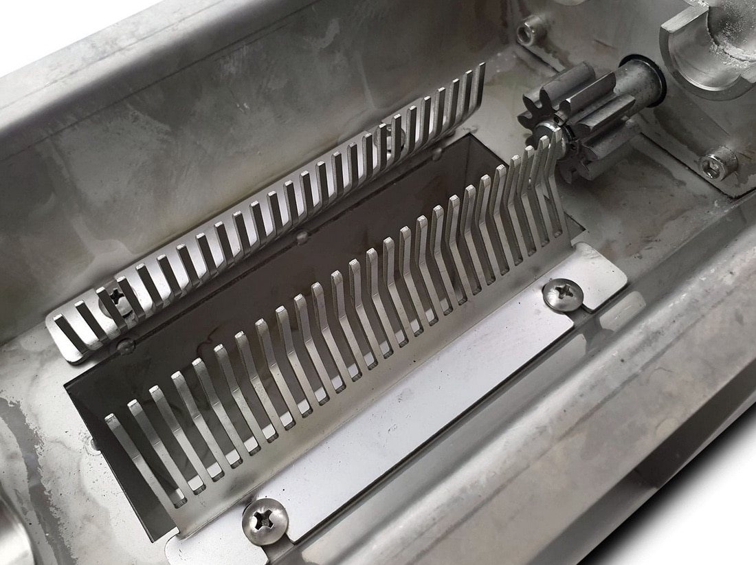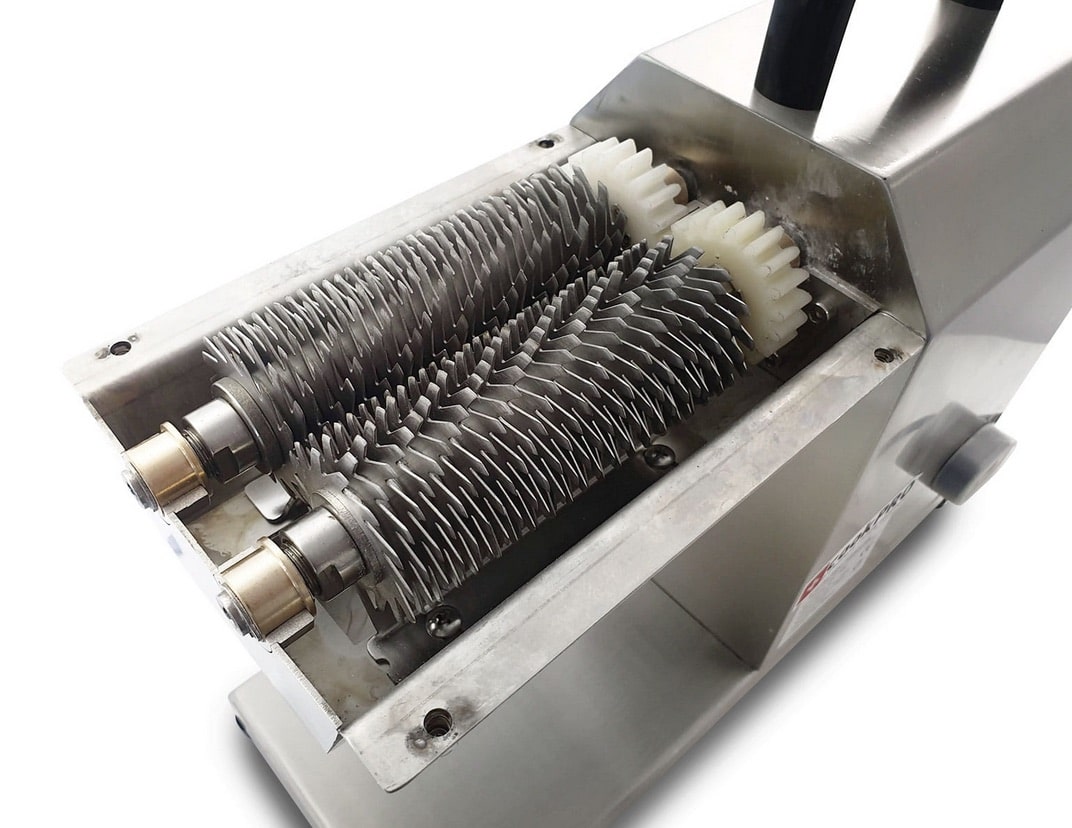 Frăgezitorul este un utilaj profesional pentru procesarea cărnii. Economisește timp, crește profitabilitatea, productivitatea și asigură rezultate constante la fiecare preparat. Sistemul de tăiere și frăgezire trece carnea prin doi cilindri cu lame, făcând-o perfectă pentru șnițele și cotlete.