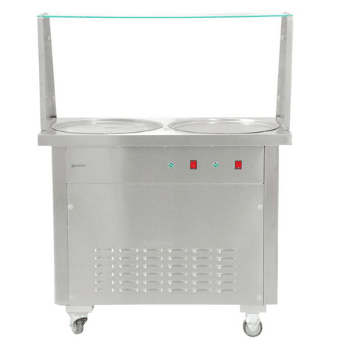 Prepararea este destul de simplă, fiind facilitată de acest utilaj special pentru înghețată thailandeză. Echipamentul oferit este dotat cu roți pentru transport facil și două stații de lucru. Spatule incluse.