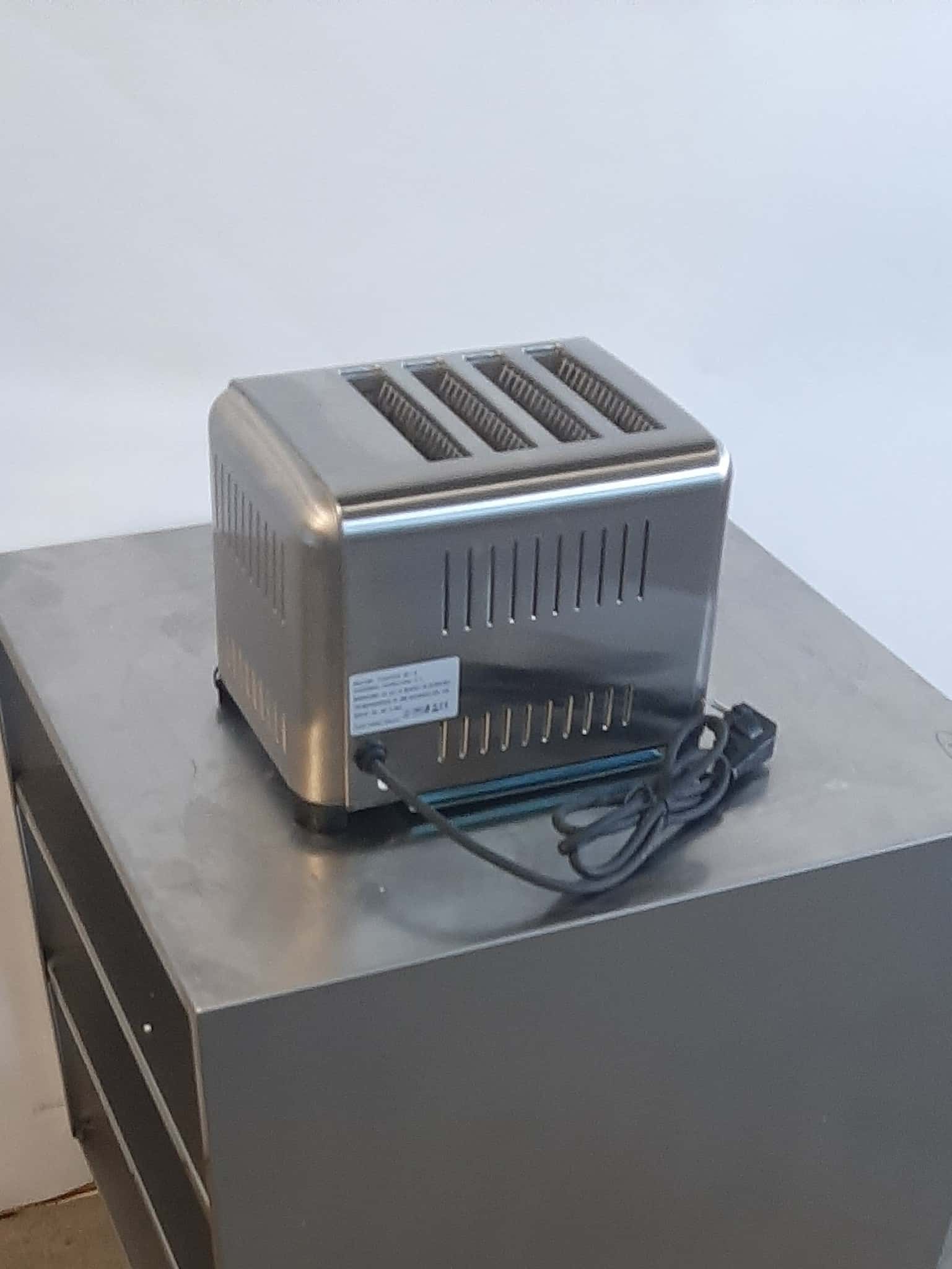 Maxima prăjitor de pâine | MT-4 este un prăjitor profesional cu carcasă din oțel inoxidabil. Modelul MT-4 are un design retro atractiv, cu margini rotunjite, și este foarte ușor de curățat.