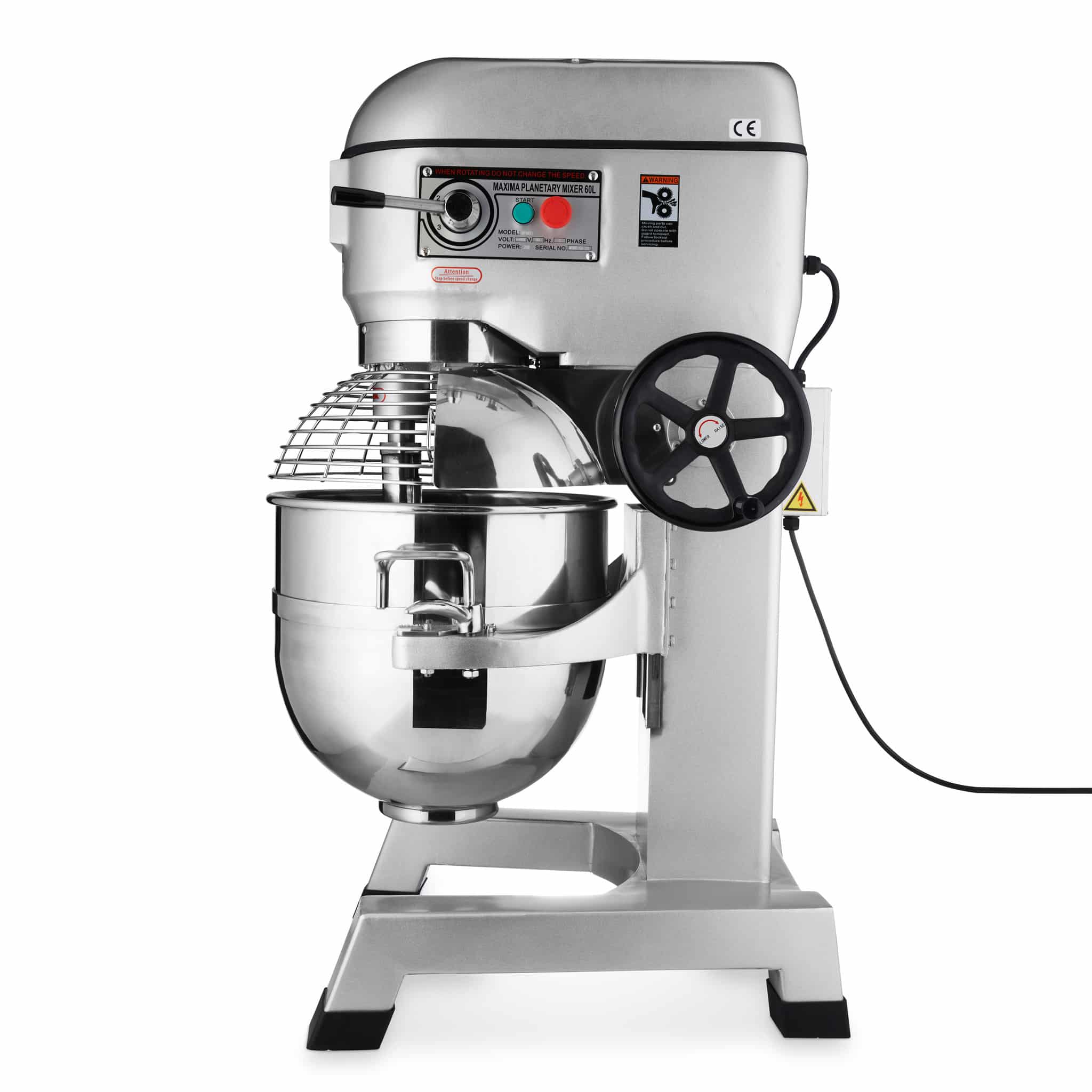 Mixerul planetar Maxima MPM 60L este un mixer profesional cu bol robust din inox, cu o capacitate de 60 litri. Acest mixer poate fi setat pe trei viteze diferite: 74, 150 și 288 rot./min. Aparatul este puternic, are viteză mare și se curăță ușor. Modelul MPM 60L dispune de carcasă solidă din fontă cu strat rezistent la zgârieturi. Mai jos găsiți toate caracteristicile mixerului planetar Maxima MPM 60L: