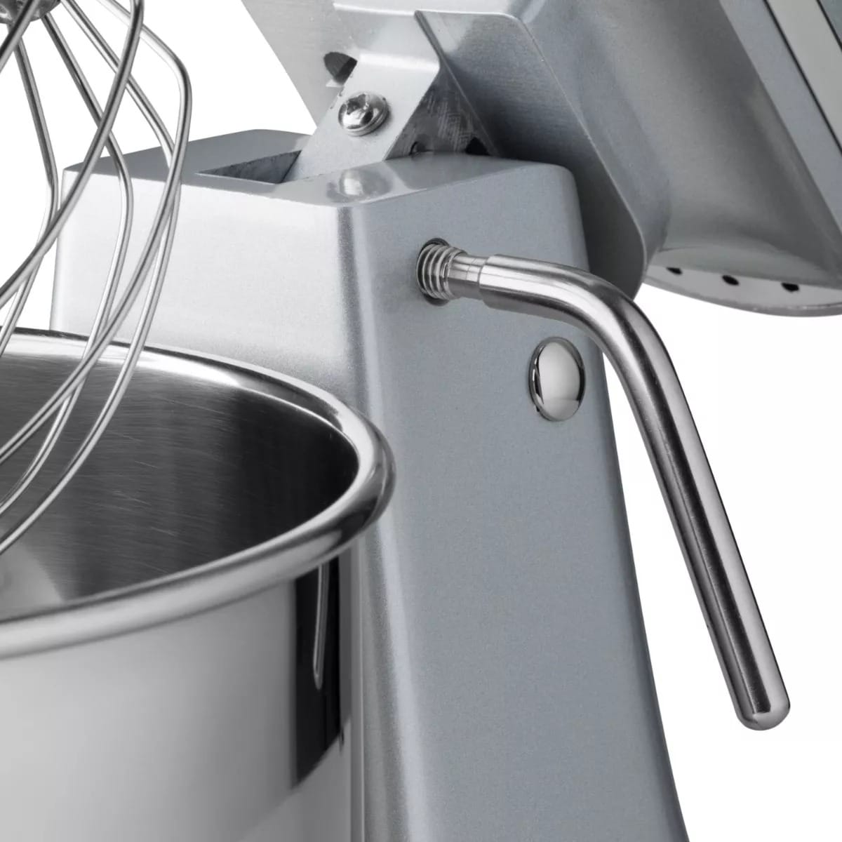 - Levierul deschide mixerul, facilitând scoaterea bolului sau schimbarea accesoriilor.