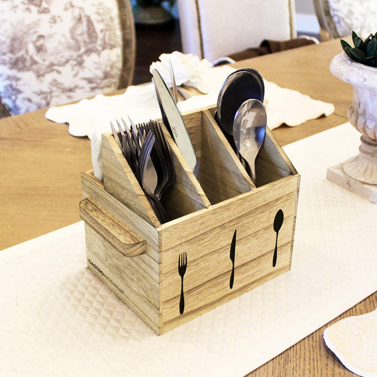 Organizator tacâmuri din lemn – lemn natural finisat | Gastrokitchen®