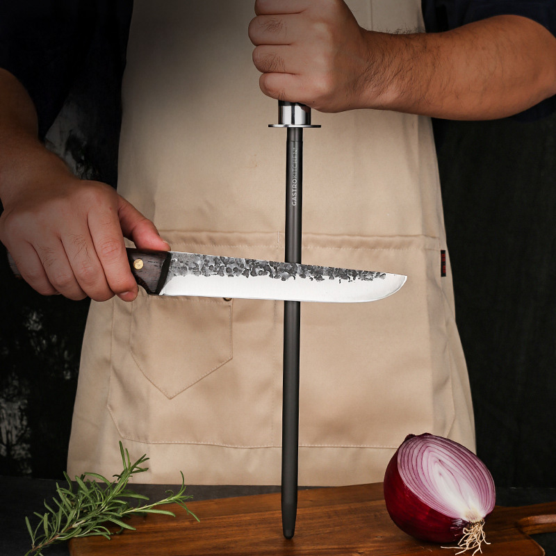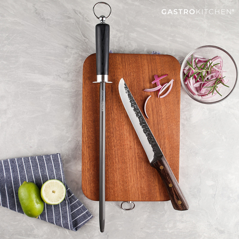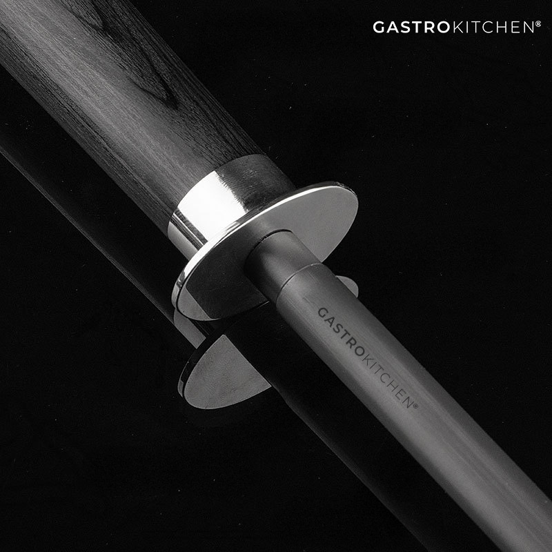 - Tijă lungă de ascuțire 30,5 cm – potrivită și pentru cuțite de bucătar XXL