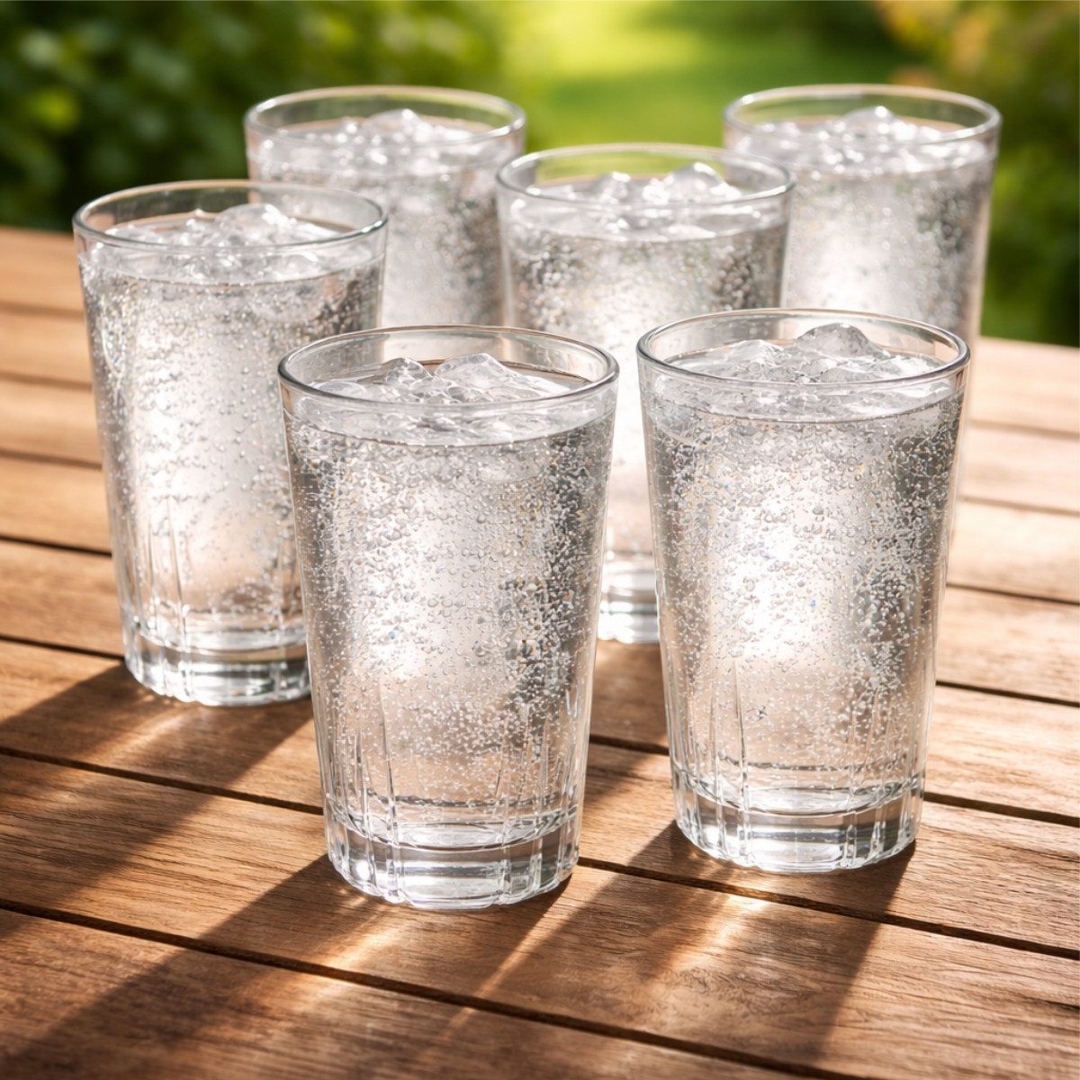 - Versatilitate – paharul este ideal pentru servirea limonadei, sucurilor, apei aromatizate și băuturilor mixte atât în locații HoReCa, cât și acasă