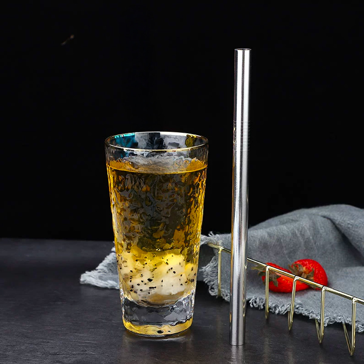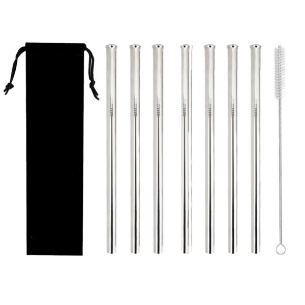 Setul conține 7 paie din oțel inoxidabil și 1 perie de curățare, care permite o spălare ușoară și eficientă. Paiele sunt fabricate din inox alimentar 304, rezistent la coroziune, nu reține mirosuri și nu alterează gustul băuturii.