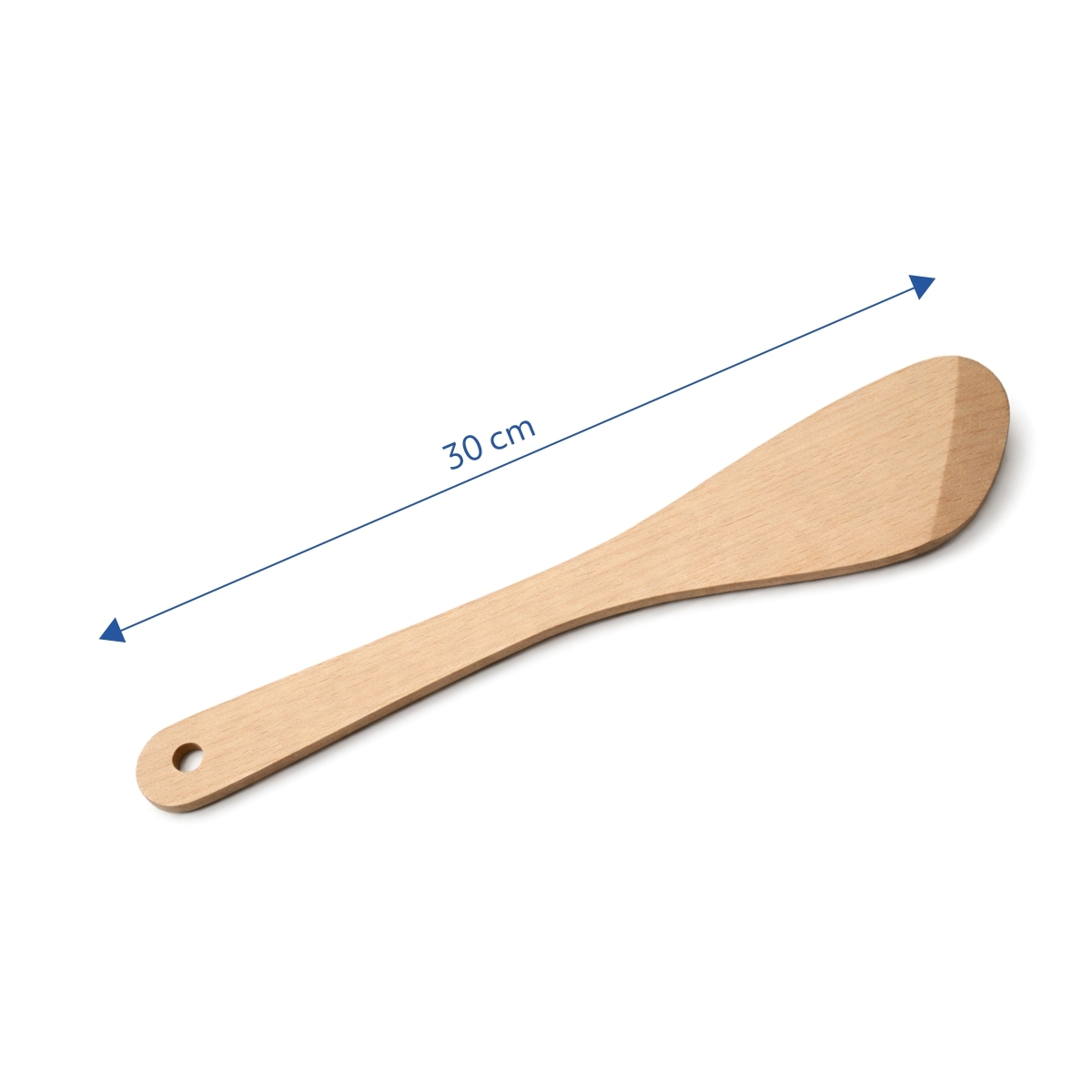 Paleta din lemn cu lungimea de 30 cm este un accesoriu practic pentru orice bucătărie profesională sau acasă. Datorită formei teșite permite întoarcerea ușoară și manipularea simplă a preparatelor.