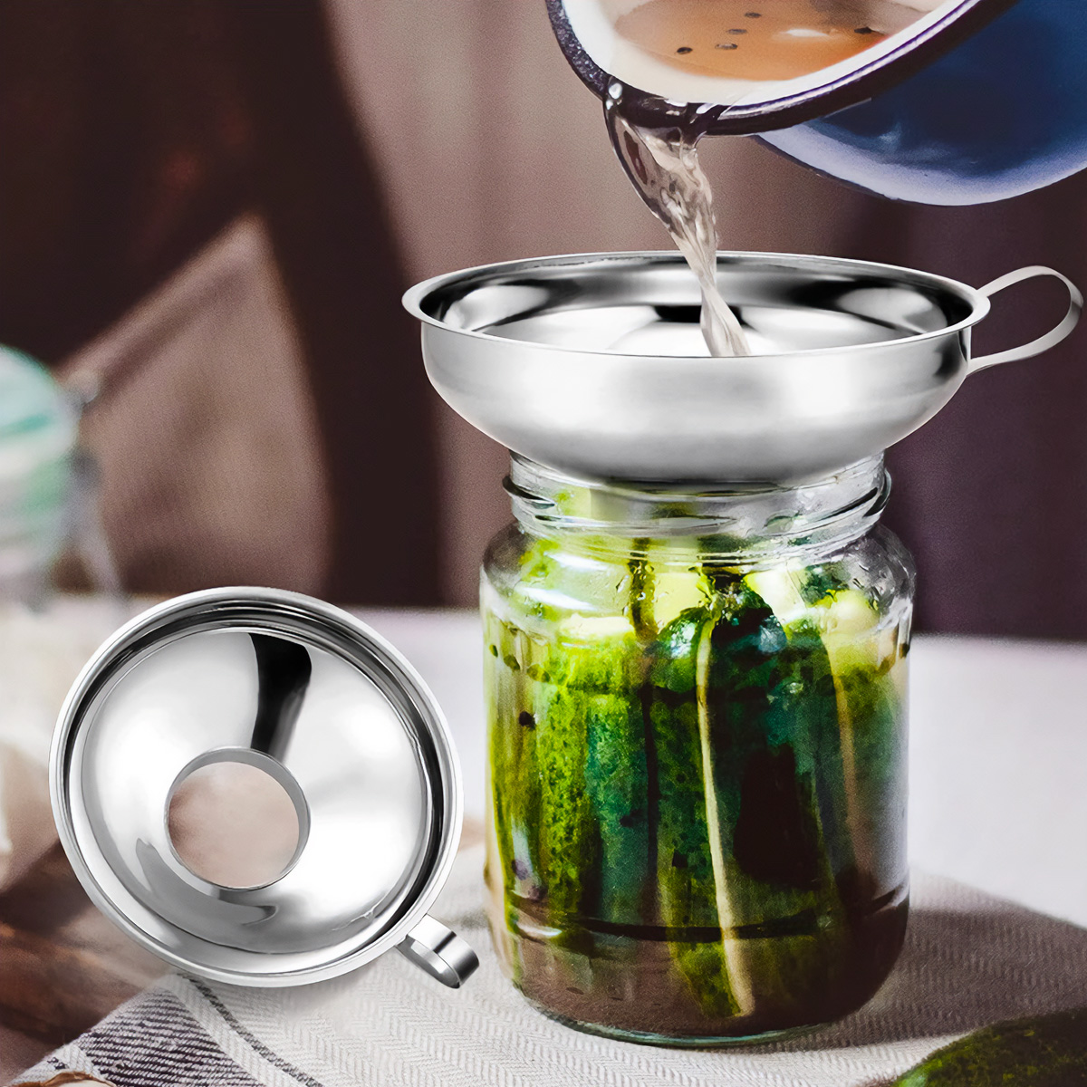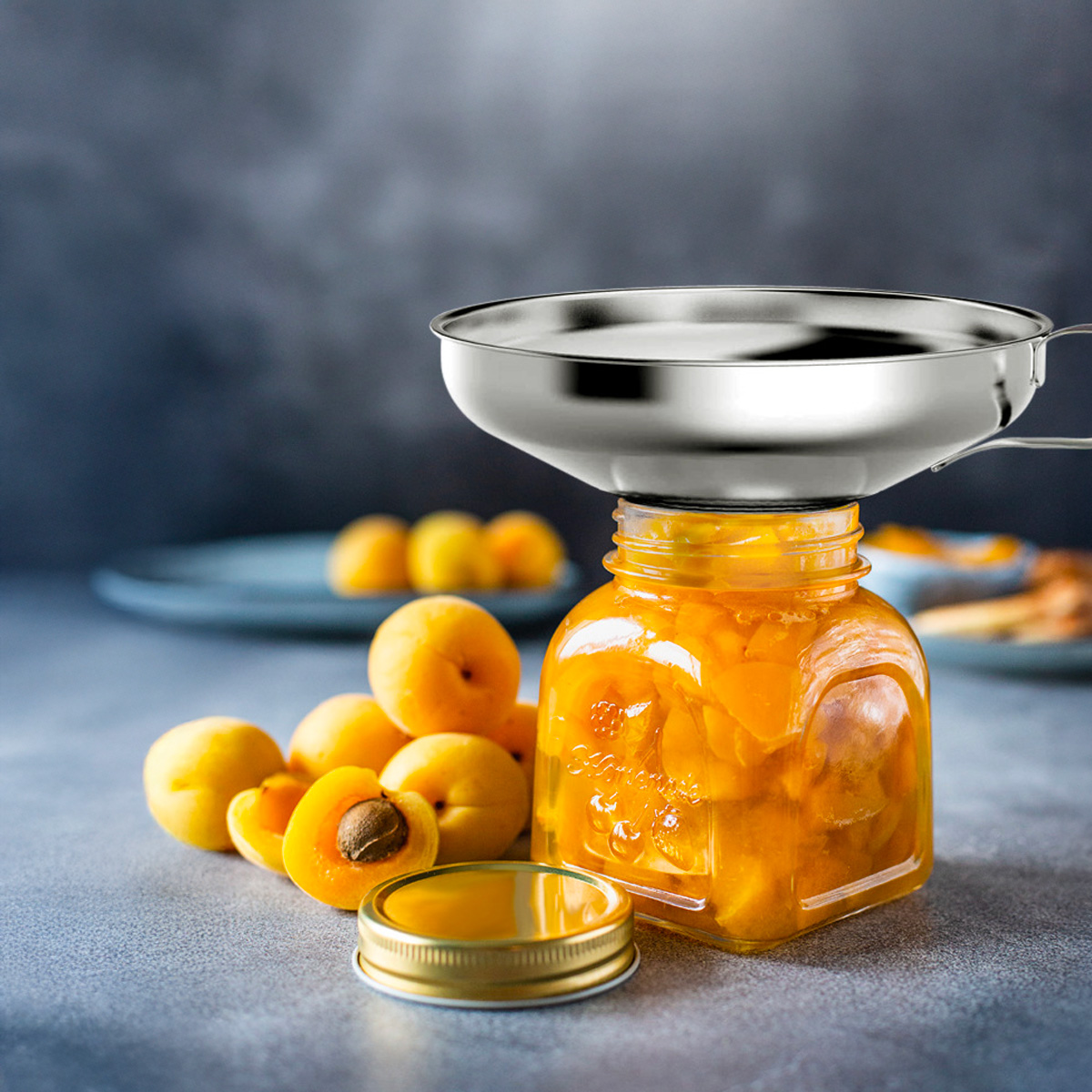 Pâlnia practică din inox cu gât scurt și mâner este ajutorul ideal pentru umplerea sticlelor, borcanelor pentru conserve sau dozarea lichidelor fără riscul de vărsare. Dimensiunea sa mai mică este potrivită pentru vasele obișnuite din bucătărie. Mânerul asigură o manipulare comodă, iar materialul din oțel inoxidabil garantează igiena și durabilitatea pe termen lung.