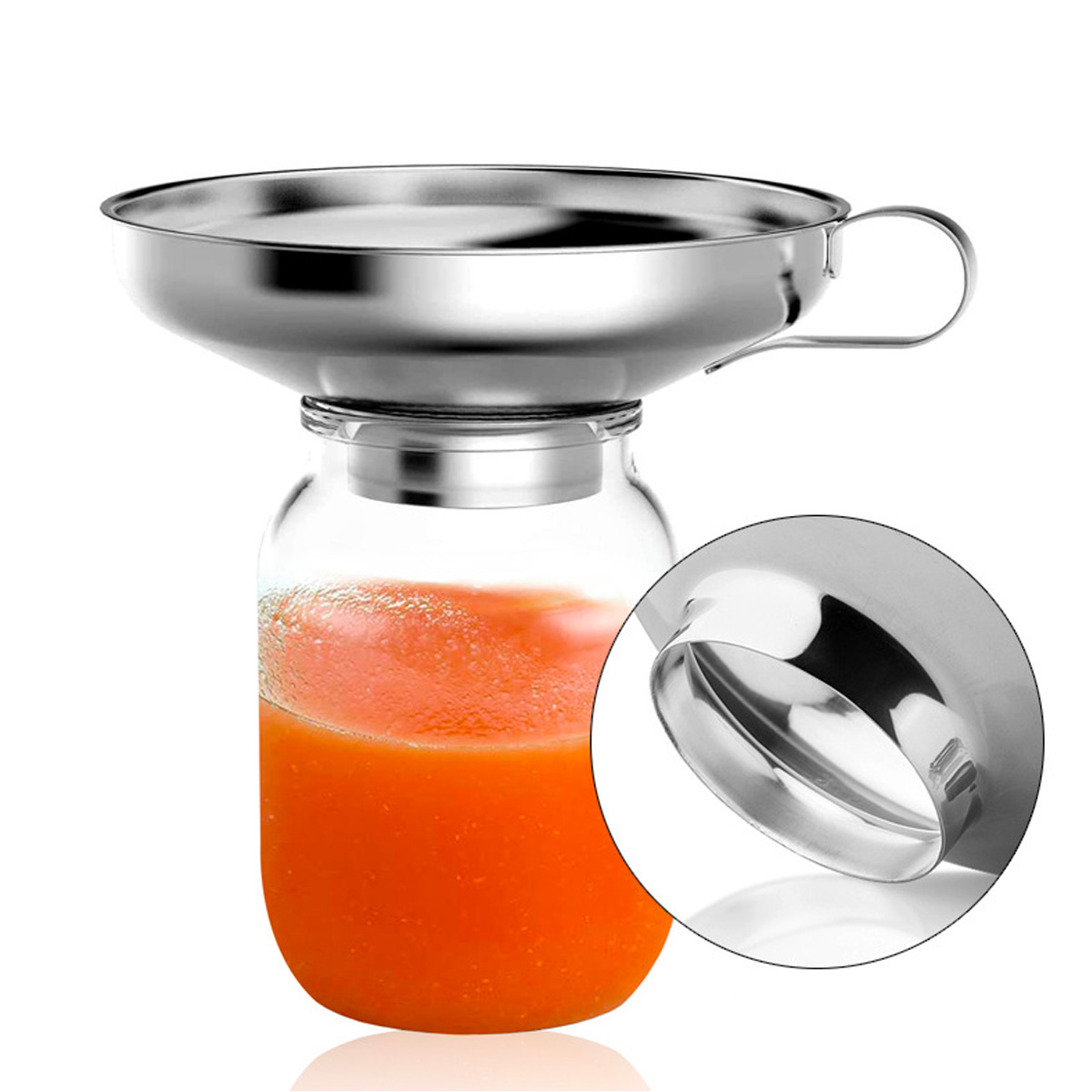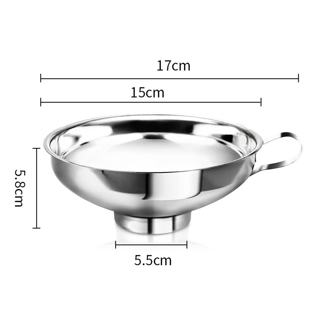 Pâlnia practică din inox cu gât scurt și mâner este ajutorul ideal pentru umplerea sticlelor, borcanelor pentru conserve sau dozarea lichidelor fără riscul de vărsare. Dimensiunea sa este potrivită pentru vasele obișnuite din bucătărie. Mânerul asigură o manipulare comodă, iar materialul din inox garantează igiena și durabilitatea pe termen lung.