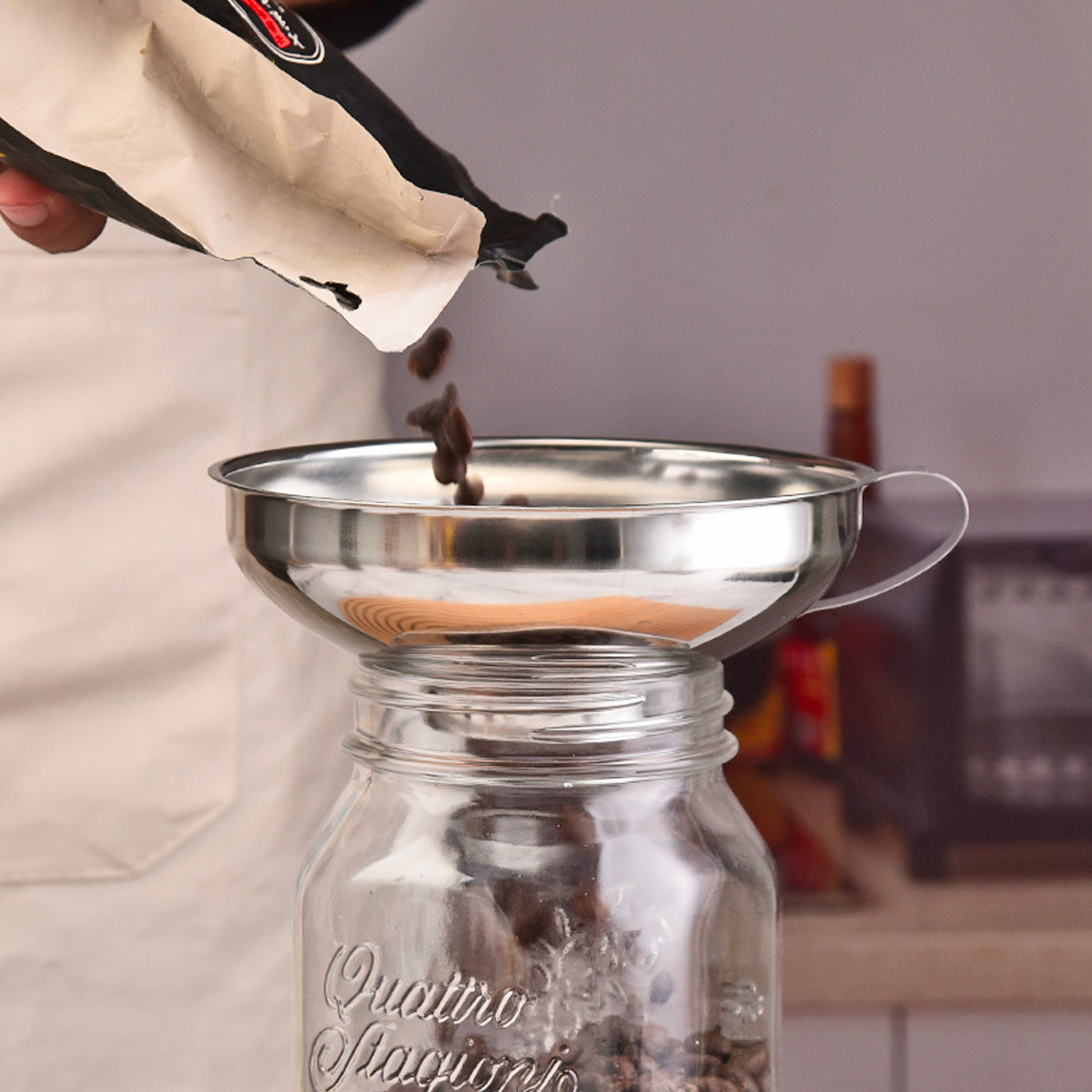 Pâlnie inox cu gât scurt și mâner – mărime L | Gastrokitchen